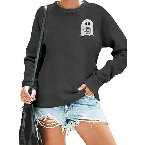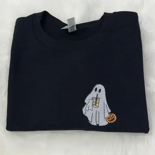 Ghost coffee holding trik or treat basket embroidered sweatshirt