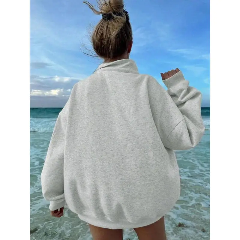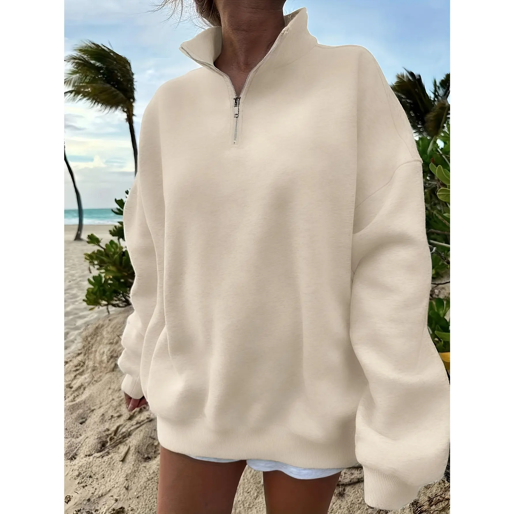 Women'sSolidHalfZipUpPulloverSweatshirt,CasualLongSleeveCollaredSweatshirtforBeachVacation,LadiesClothesforAllSeasons