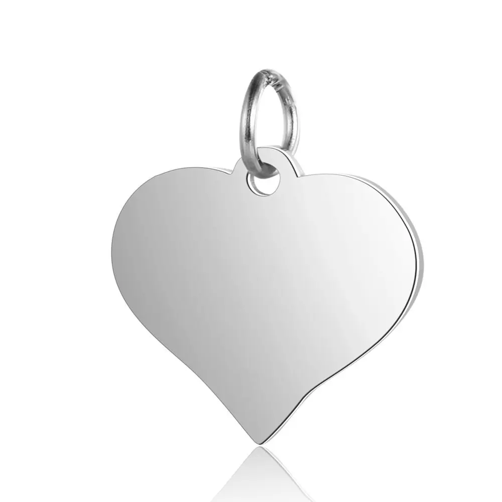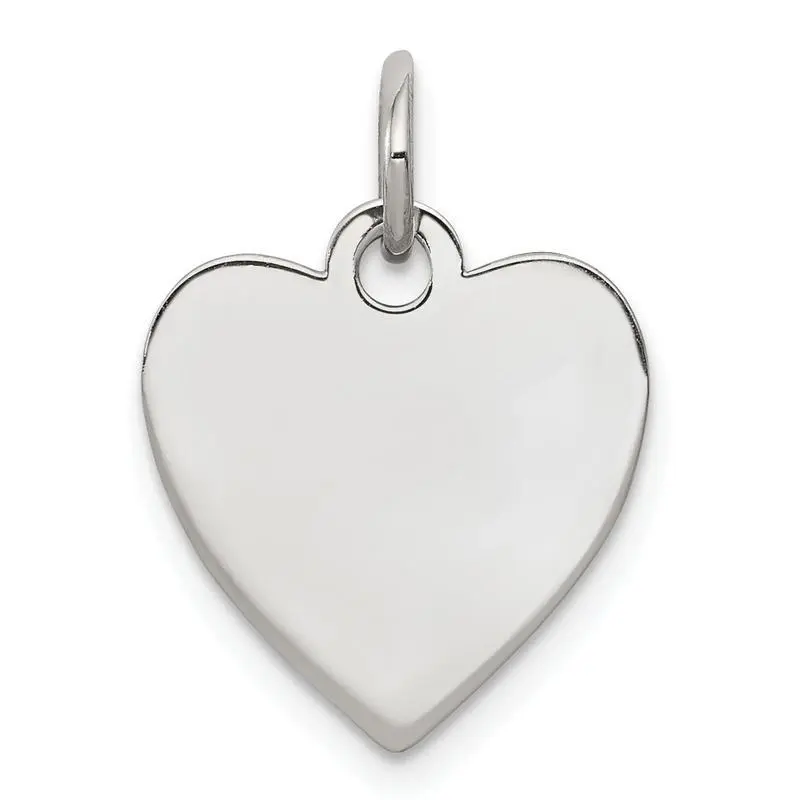 SS Rh-plt Engraveable Heart Polished Front/Satin Back Disc Charm