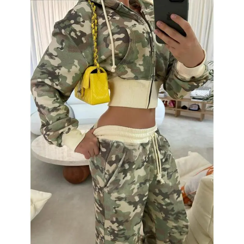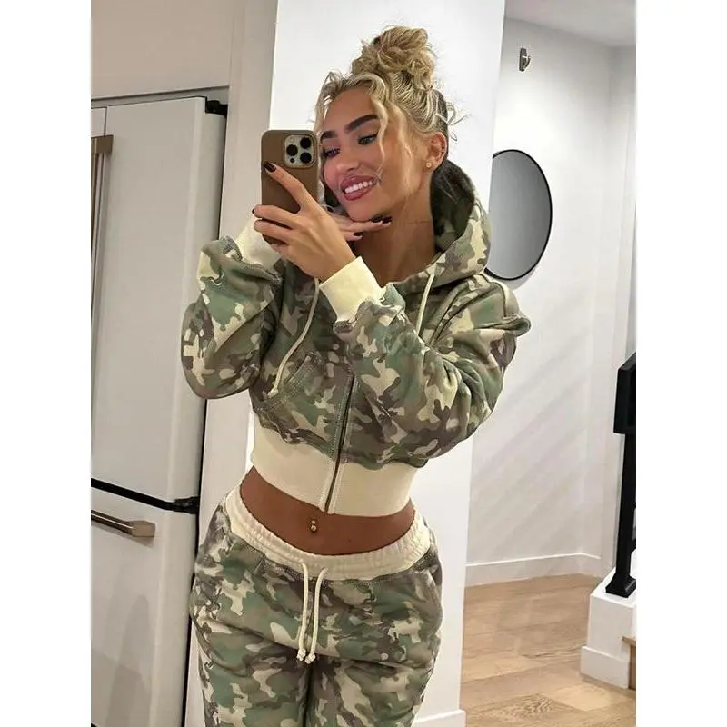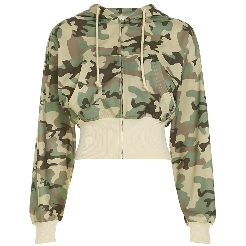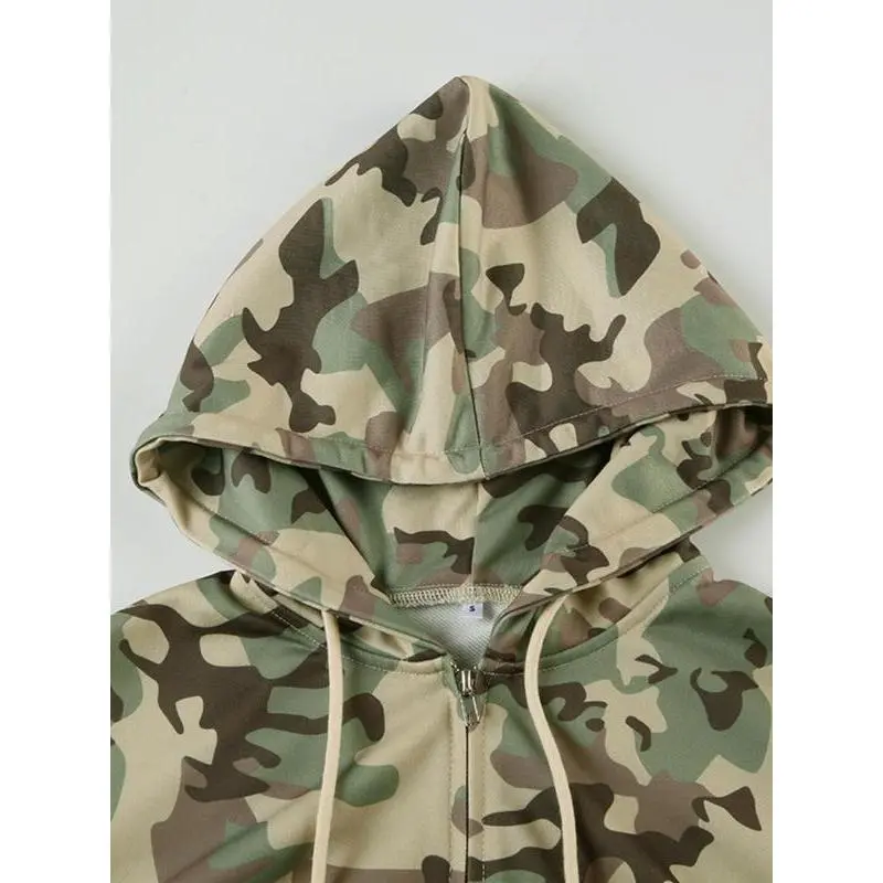 Women's Camo Print Zip Up Hoodie Jacket, Casual Long Sleeve Hooded Sweatshirt for Spring & Fall, Ladies Clothes for Daily Wear