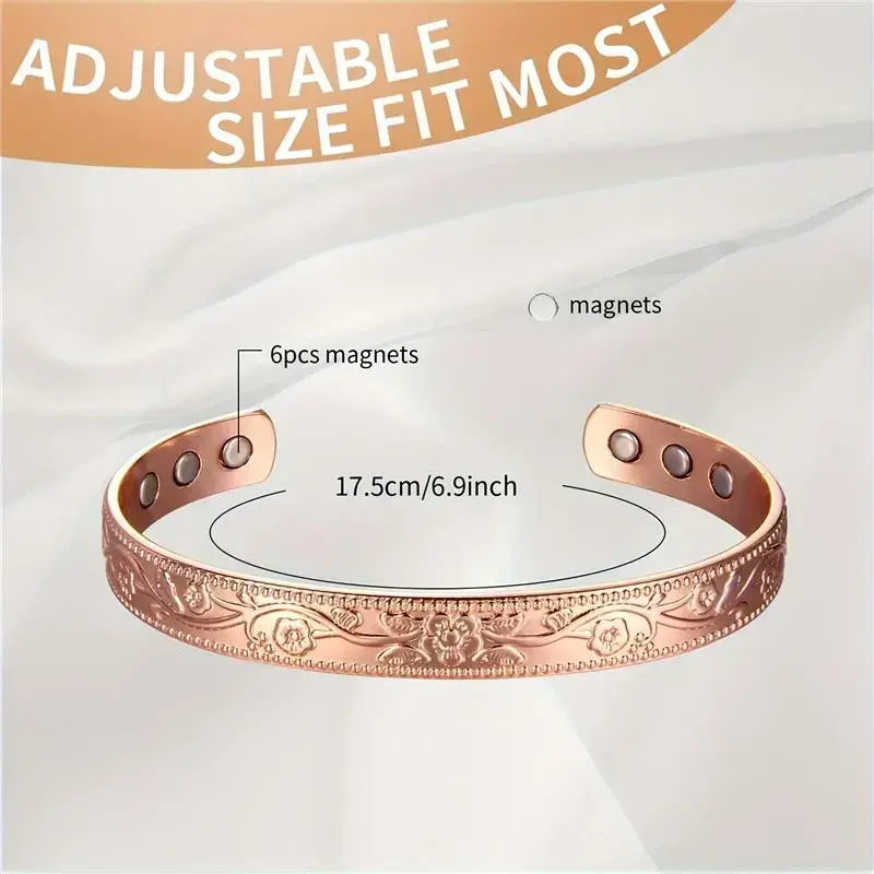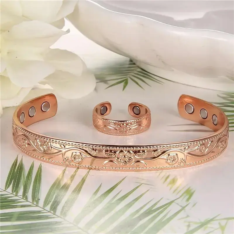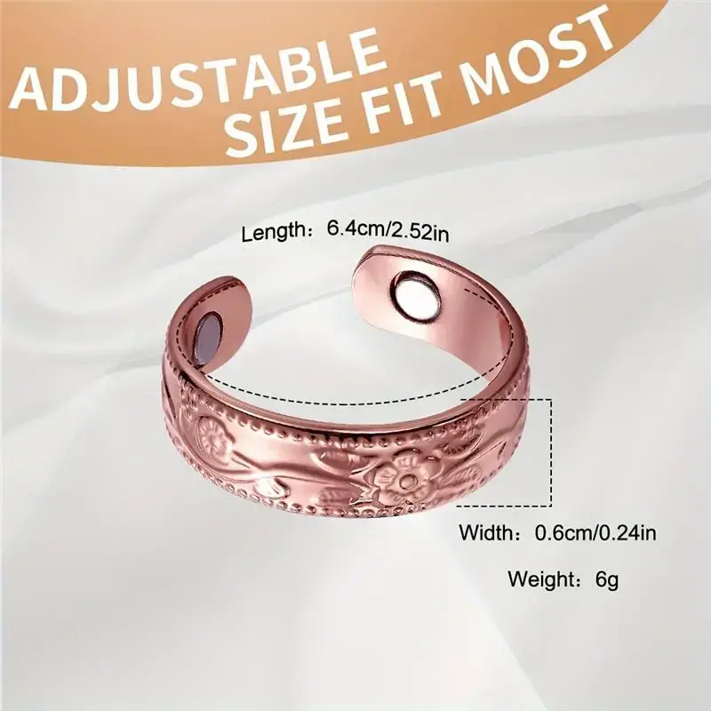 Ladies' copper bracelet and copper ring, copper ring bracelet, adjustable size strength magnet, magnetic copper sleeve, mother's birthday and Christmas gift set