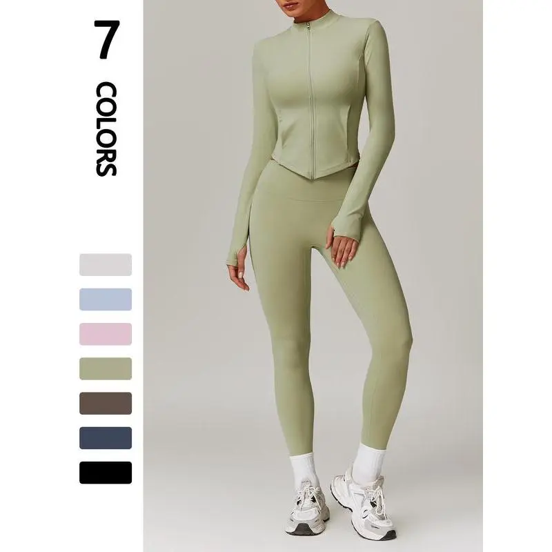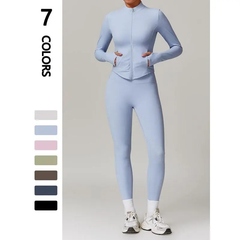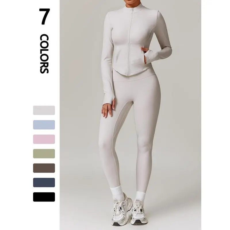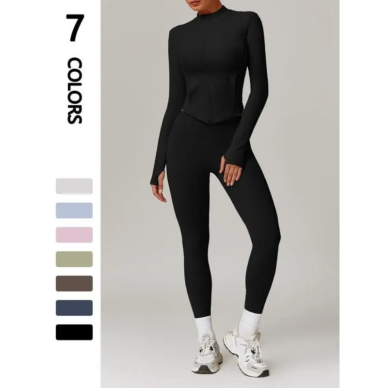 【High-Performance Fabric】: Crafted from jersey elastane, this set offers superior elasticity and breathability, enhancing flexibility during workouts and daily activities. 【Mock Neck Feature】: The mock neck provides added neck coverage, offering extra warmth and protection against the elements during your outdoor endeavors. 【Thumb Hole Cuffs】: Equipped with thumb holes, the sleeves keep coverage in place during workouts, preventing the fabric from riding up and ensuring a secure fit. 【Functional Pockets】: Featuring practical pockets, this set allows you to securely carry essentials hands-free, blending function seamlessly into your routine.