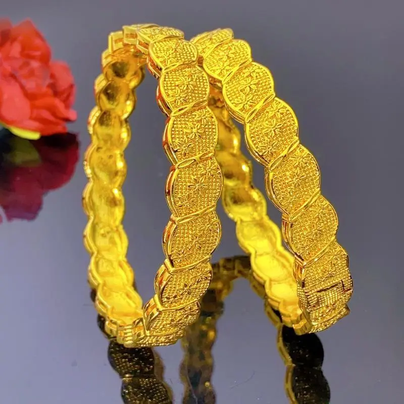 2pcs24KplatedbraceletbanglesBridesShinyGoldColorNO-FadingWeddingBridalmatchingcharmGlamorousShimmerGlitterforwomenDesignElegant