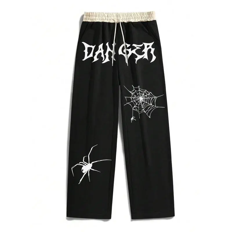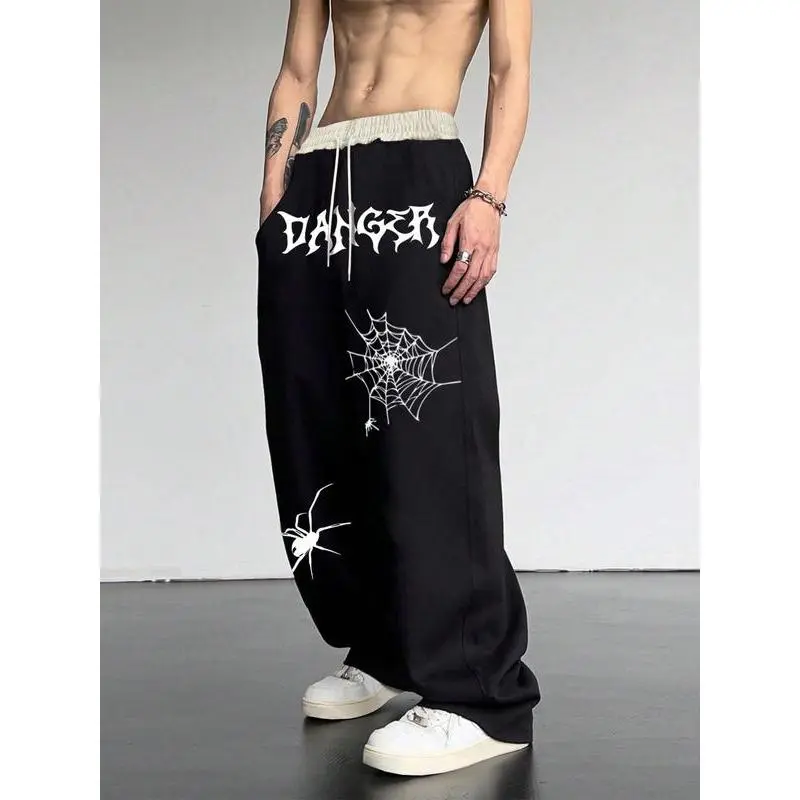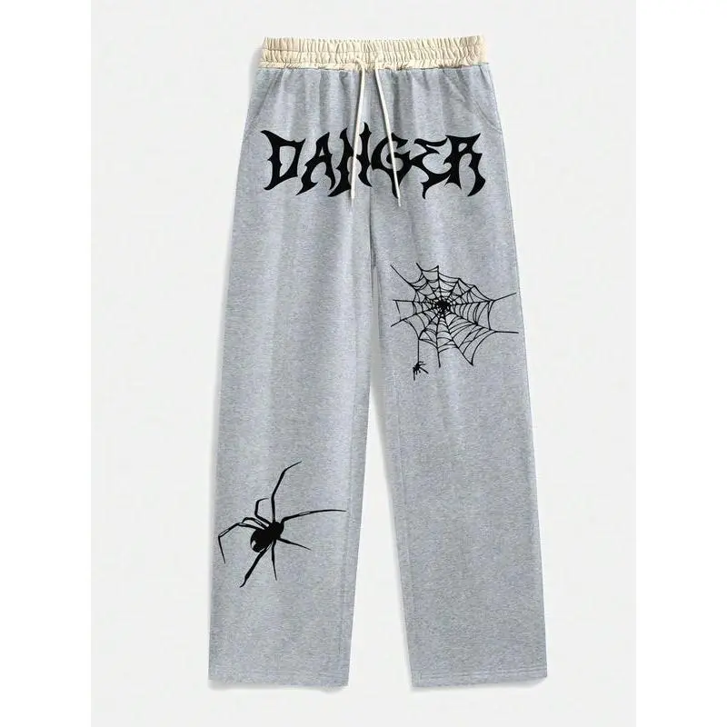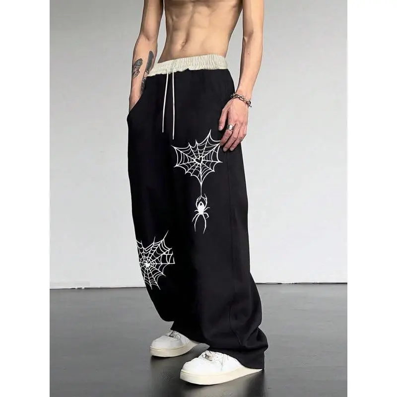 Men's Spider Web Print Drawstring Waist Sweatpants, Casual Comfy Pocket Straight Leg Trousers for Daily Wear, Fashion Men's Bottoms for All Seasons
