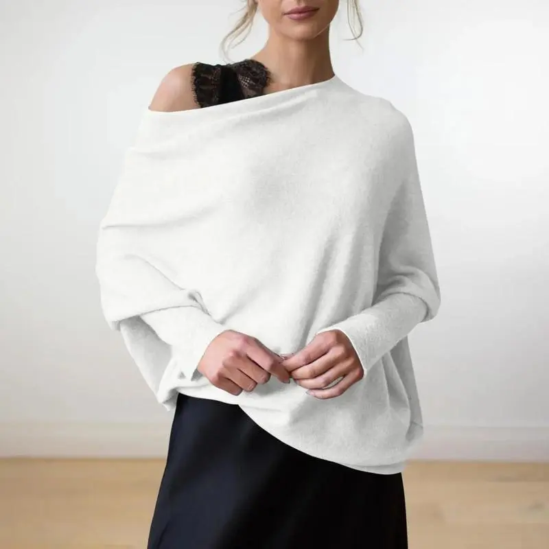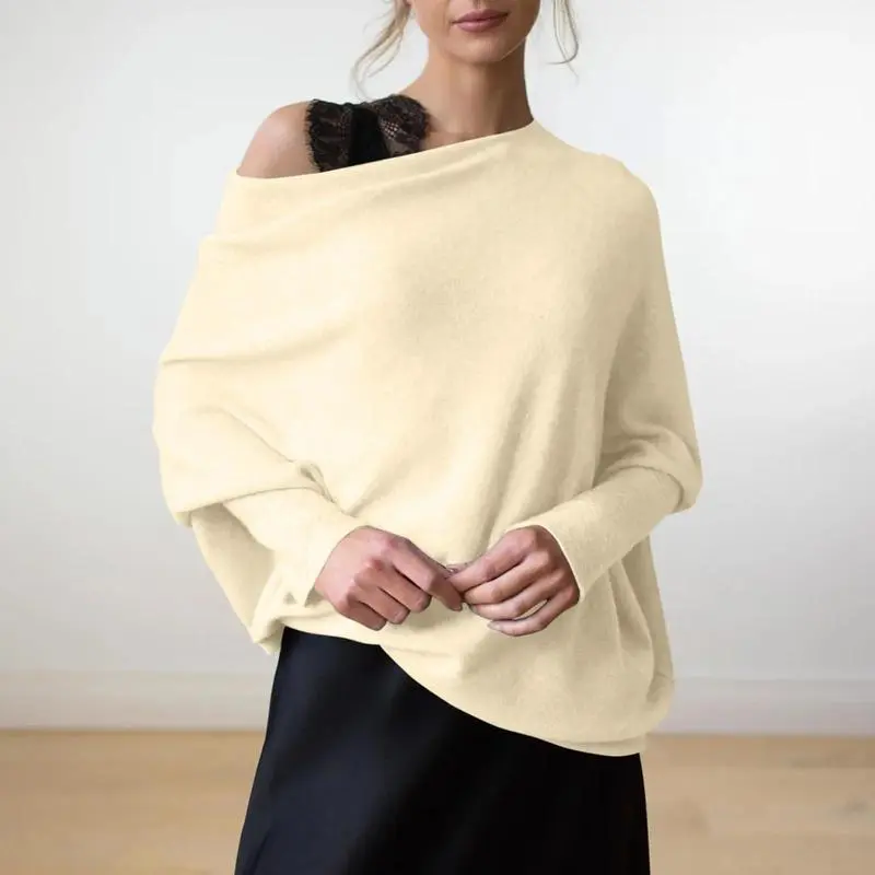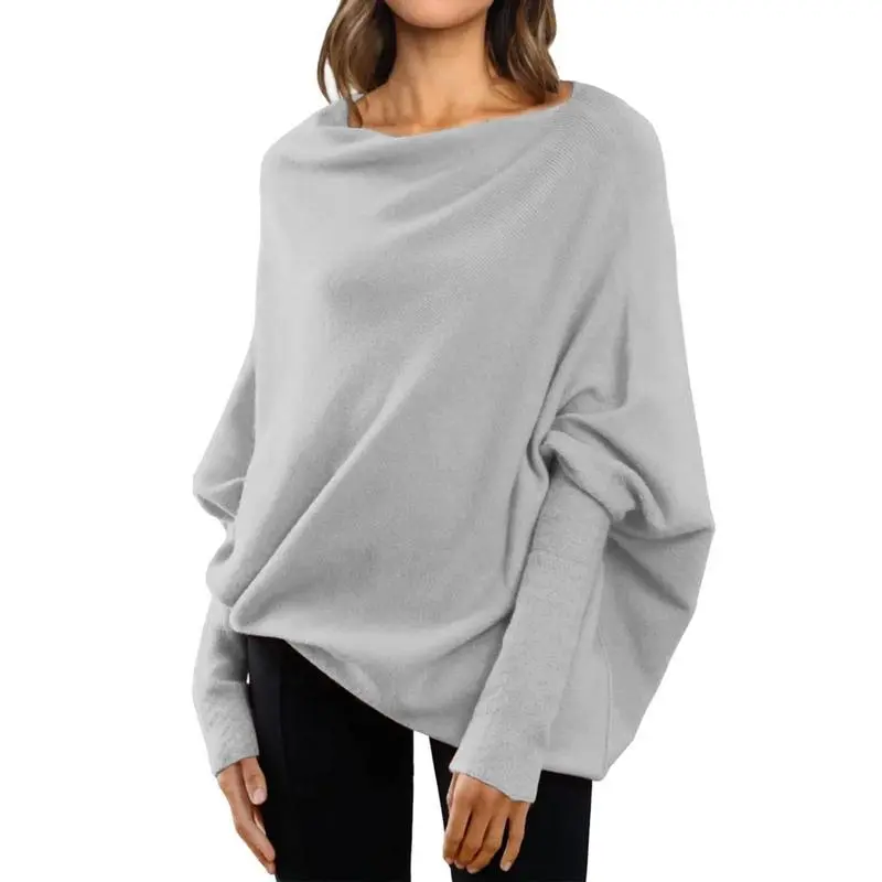 Asymmetric Draped Jumper Long Batwing Sleeve Off The Shoulder