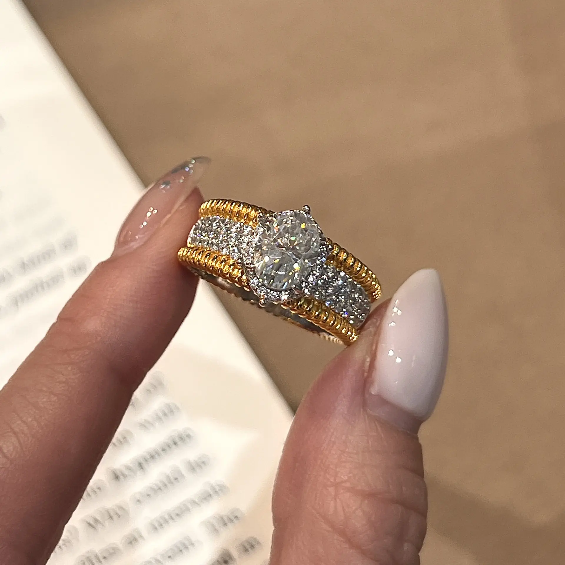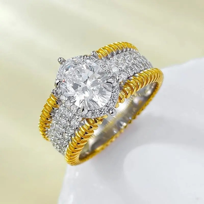 S925 Silver Wind Band Oval Cut Ring 6 * 8mm 6A Cubic Zirconia Ring fashion jewelry accessory woman girl promise ring Springtok-352