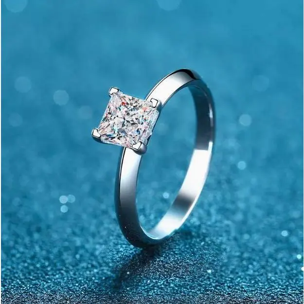 Material: 925 silver + real Moissanite Main stone: vvs moissanite passed the test Total carats of moissanite: 1CT/2CT 1 ct size :5.5 * 5.5 mm 2 ct size7 x 7 mm Color :D color Free GRA certification includes: Yes Packaging: 1* Moissanite ring with gift box It is the best gift for Mother's Day, Valentine's Day, Christmas, birthdays, graduations, anniversaries, etc.