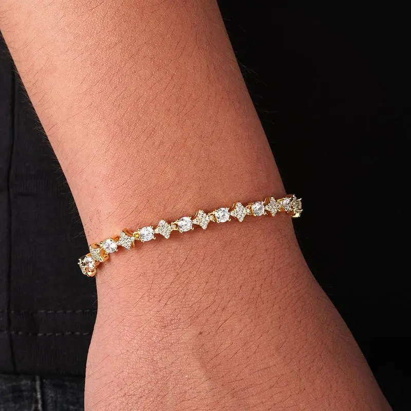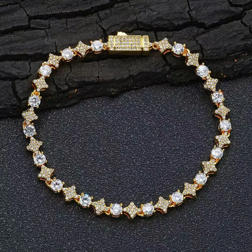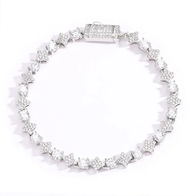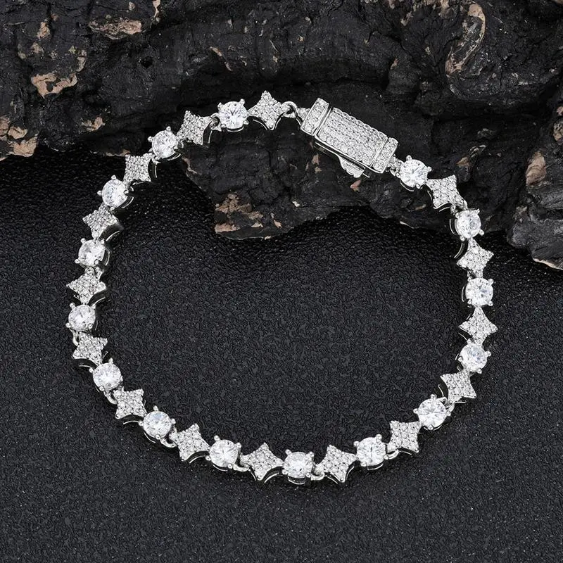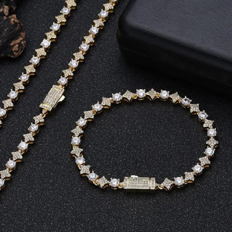 UJ Hip Hop 6mm Cross Star Zircon Tennis Chain High-end Men's Bracelet,Necklace