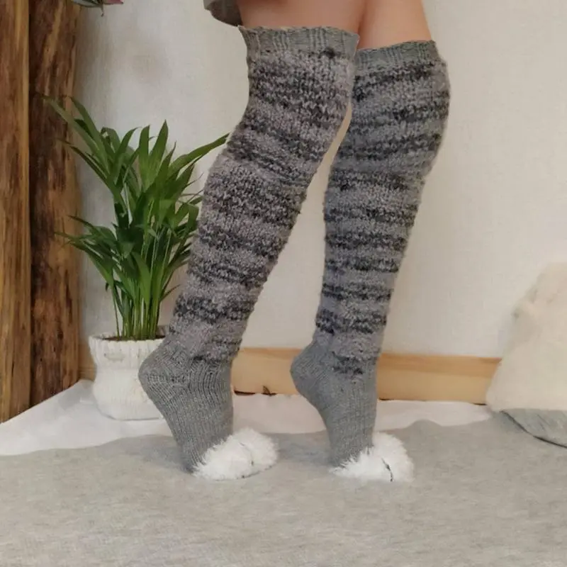 Womens Kawaii Cat Paw Knee High Socks Fuzzy Cute Fleece Warm Boot Socks Crochet Knit Leg Warmers Boot Socks Stockings
