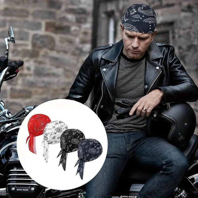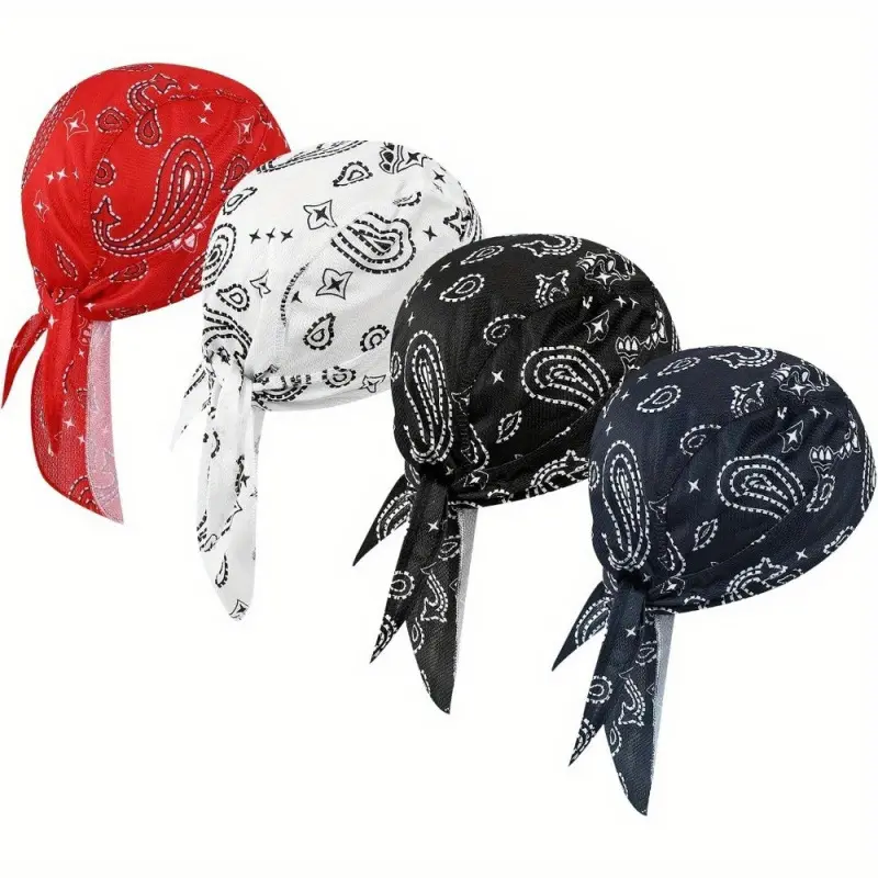 4pcs Men's Skull Caps - Fashionable, Sweat-Wicking Helmet Liners with Skeleton Design | Breathable Cycling Bandana Hats, Head Wraps, Decorations