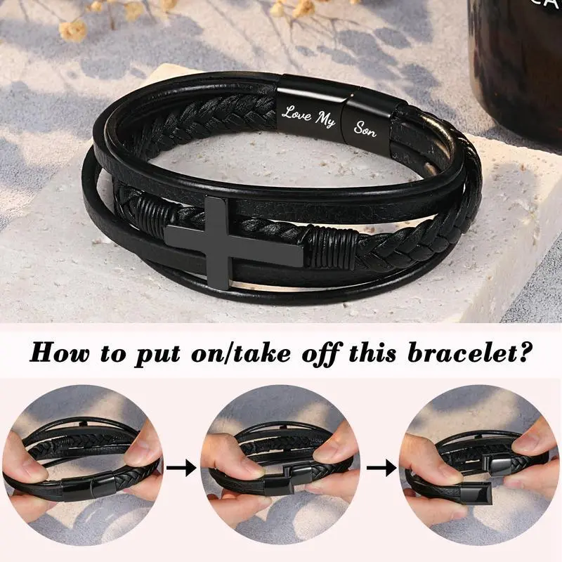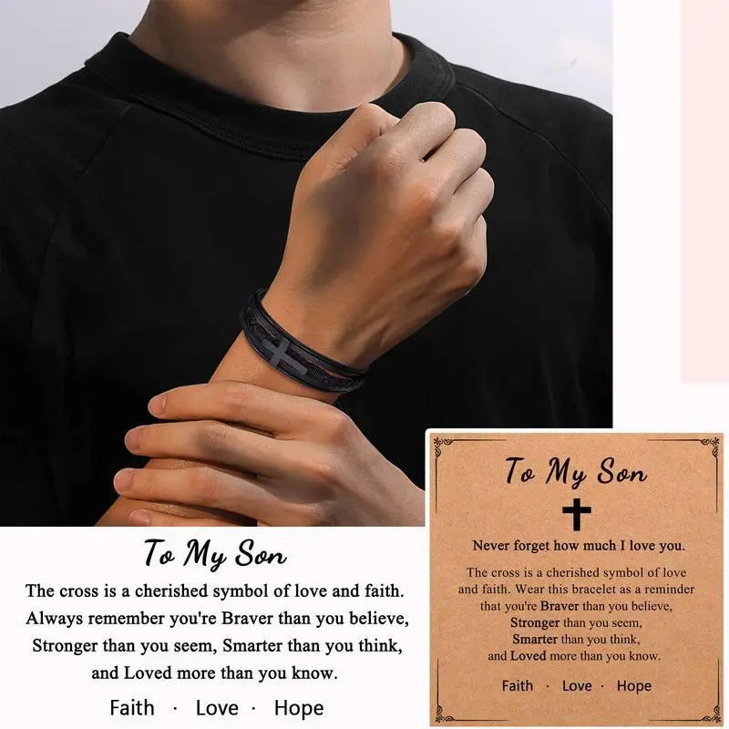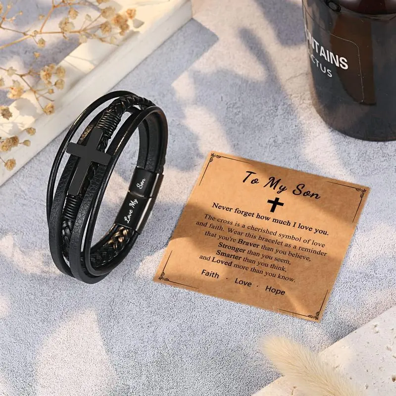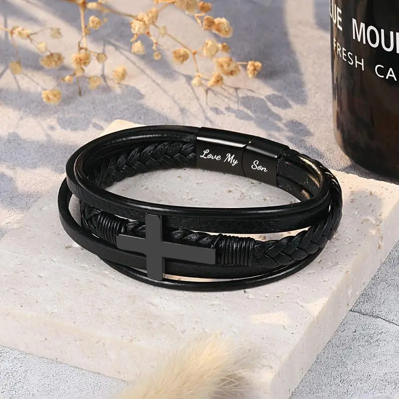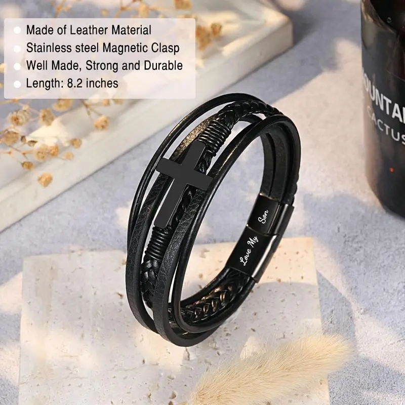 Men's Cross Leather Bracelet Fashion Accessories Boho Style Daily Clothing Decor for Birthday Christmas Gifts for Teen Boys Son/Grandson/Nephew/BoyfriendGift