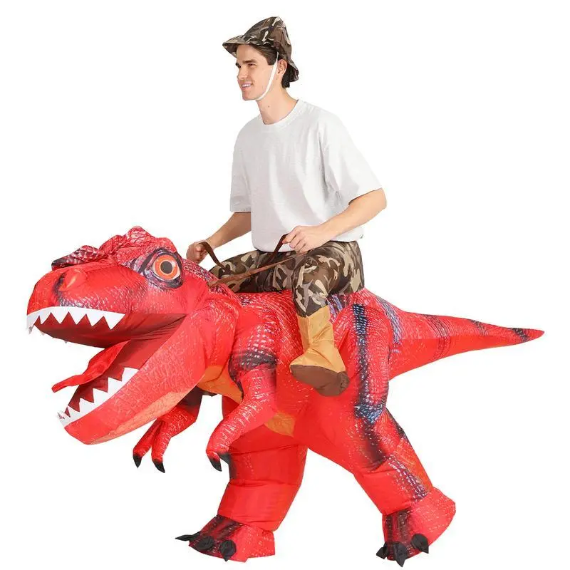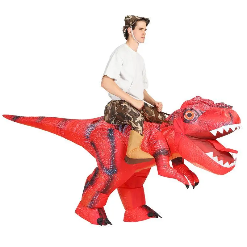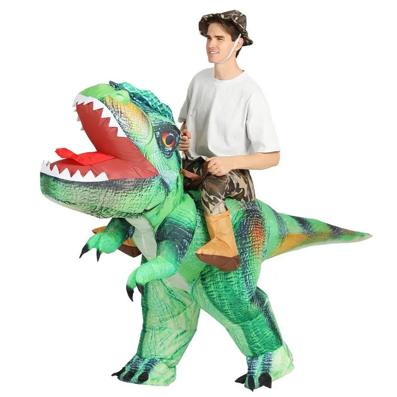Inflatable Costume Dinosaur Riding T Rex Air Blow up Funny Party Halloween Costume for Adult/Men/Women/Family Green Red