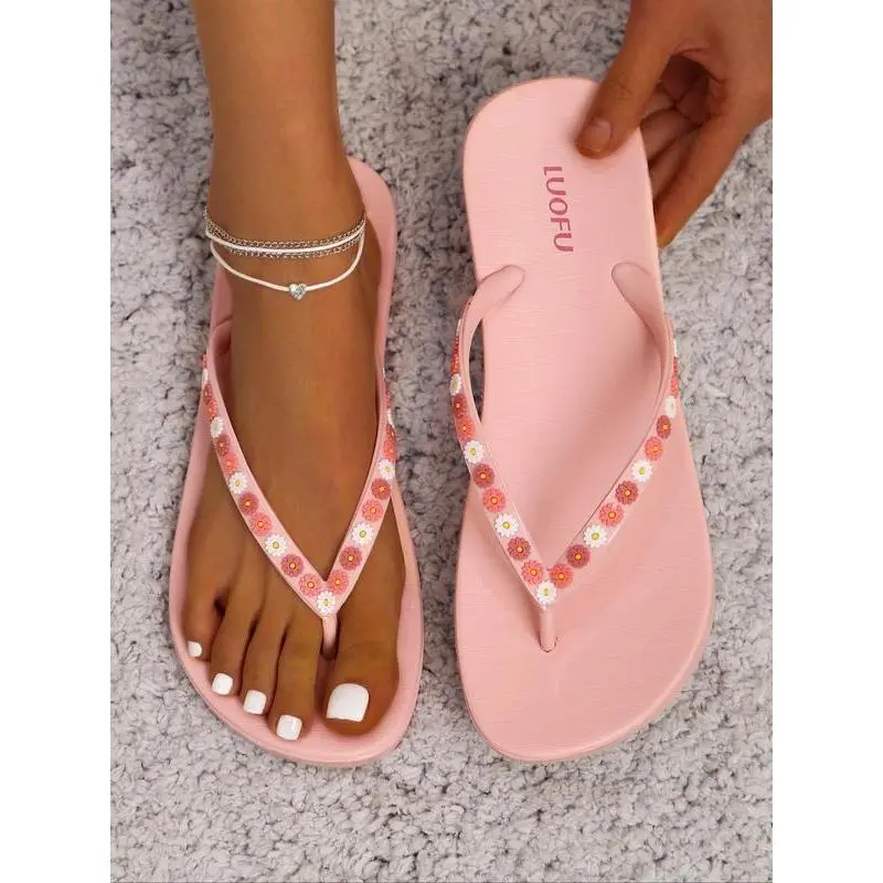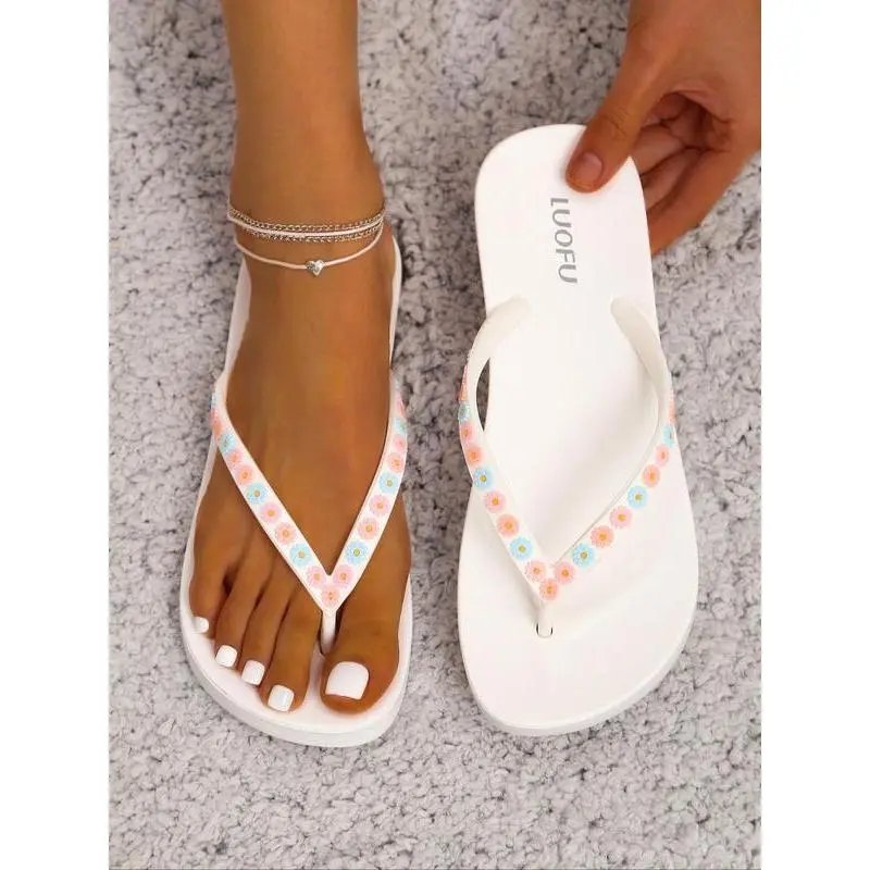 Women's Fashionable Floral Pattern Slippers Flip Flops, Summer 2024 Casual Simple Eva Slippers for Indoor & Outdoor Beach,?Thong SandalsGift