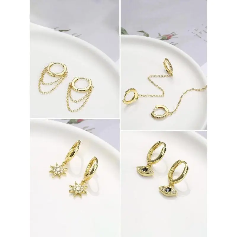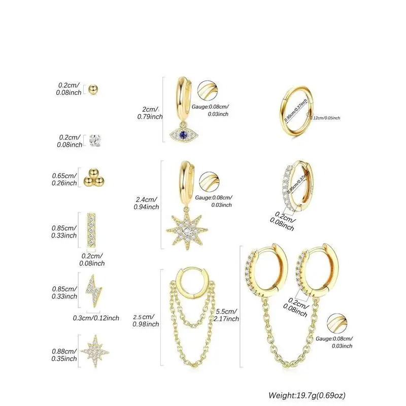 Rhinestone Decorated Lightening Design Hoop Earrings & Stud Earrings, Fashionable Earrings Set for Women & Girls, Trendy All-match & Exquisite Cubic Zirconia Jewelry for Birthday Gift, Earring StackGift