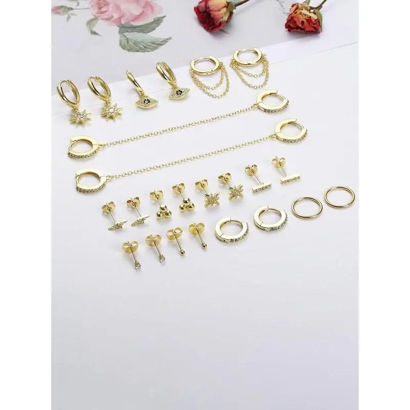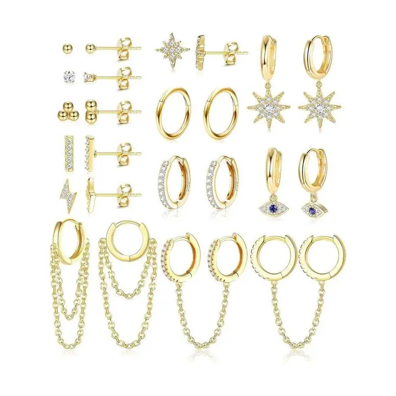 Rhinestone Decorated Lightening Design Hoop Earrings & Stud Earrings, Fashionable Earrings Set for Women & Girls, Trendy All-match & Exquisite Cubic Zirconia Jewelry for Birthday Gift, Earring Stack