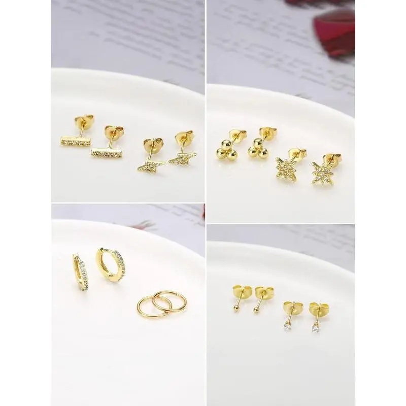 PAVOI Waterproof Five Pairs Stud Earrings Set for Women - 14K Gold Plated Stainless Steel 5 Earrings Pack - Hypoallergenic Premium Cubic Zirconia Studs