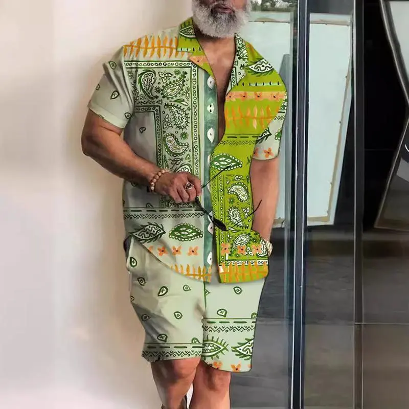 FashionMen'sShirtPersonalizedCasualShortSleeveShirtShortsSet