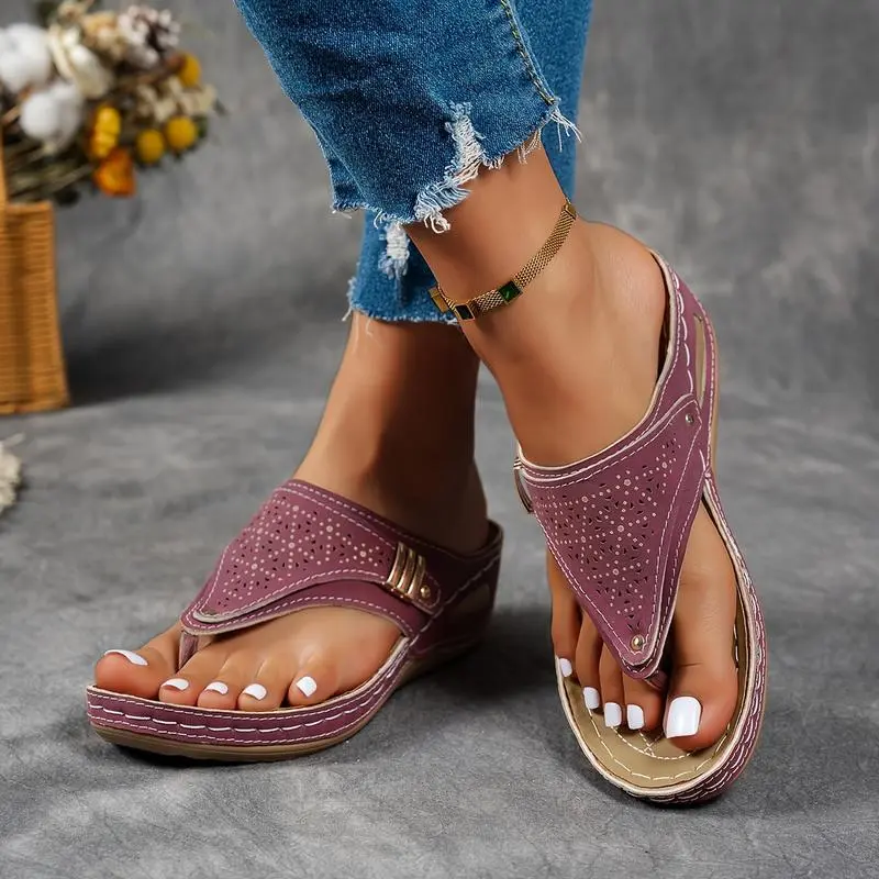 Women'SFashionWedgeFlipFlops-ComfortableArchSupport,BreathableOutdoorSandals,SoftSole,SplitToeDesign,VersatileforBeachTravel&DailyWear,FashionableBlackSandalswithGoldenBuckleDetail,BeachFootwear|FashionableSandals|