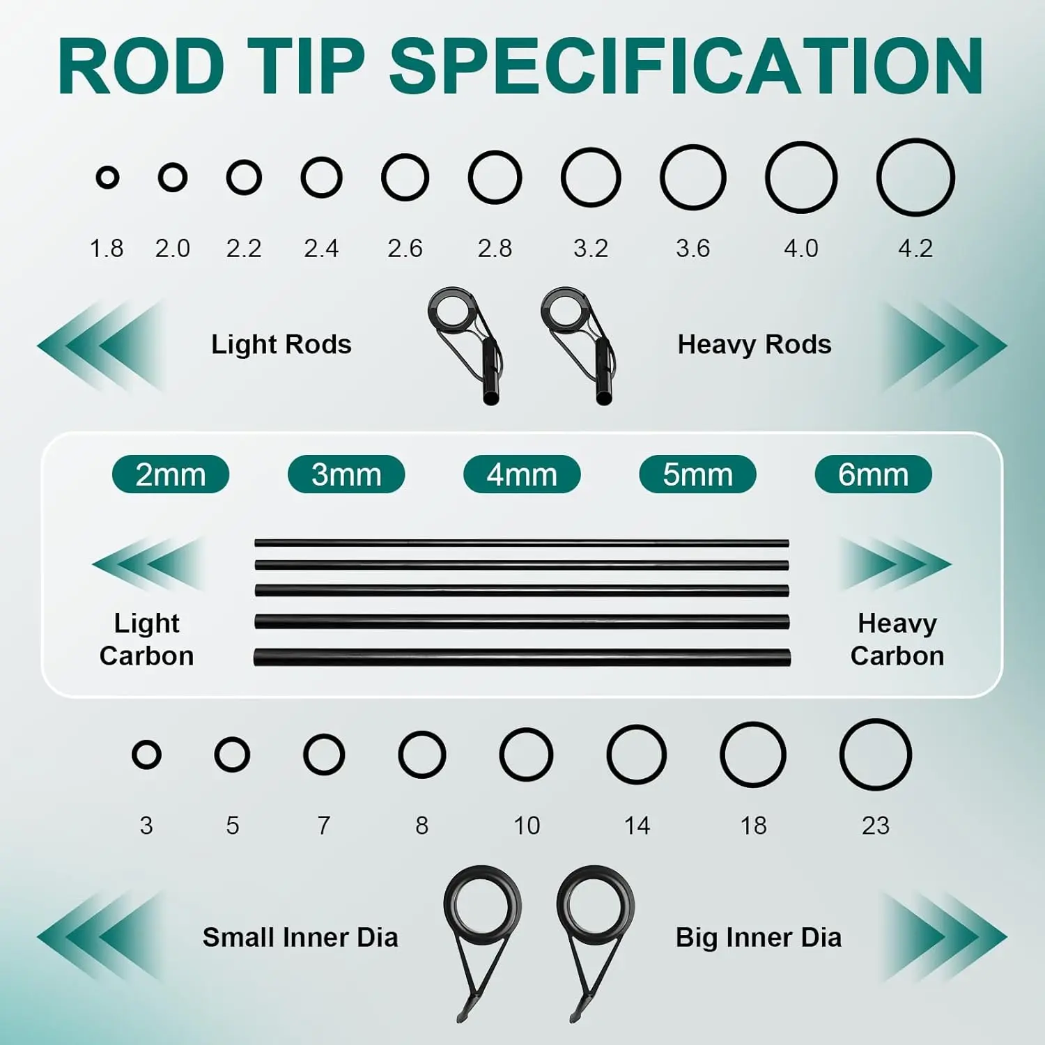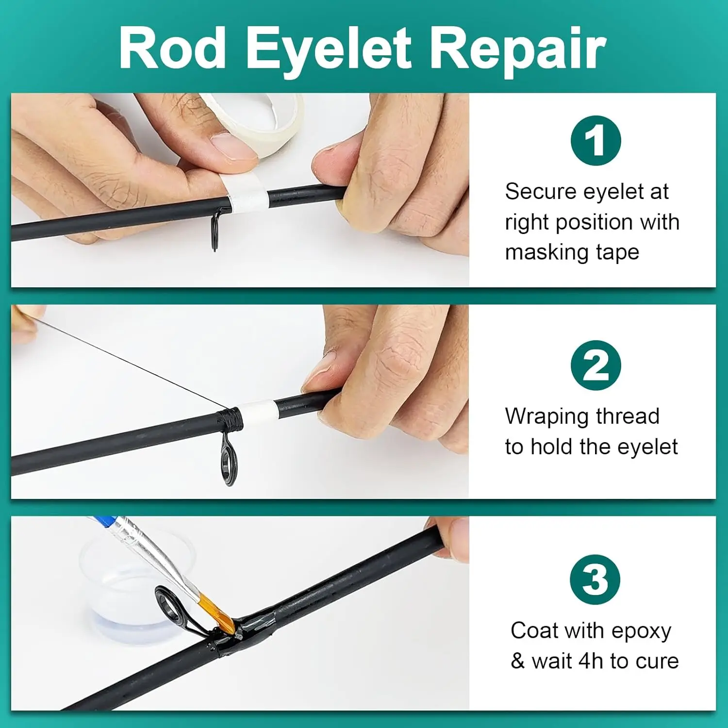 Fishing Rod Repair Kit - 3-in-1 Fishing Pole Complete Supplies Kit for Rod Tips, Fishing Rod & Guide Eyelets Replacement, with Epoxy Glue, Wrapping Thread, Other Fishing Accessories & Gear