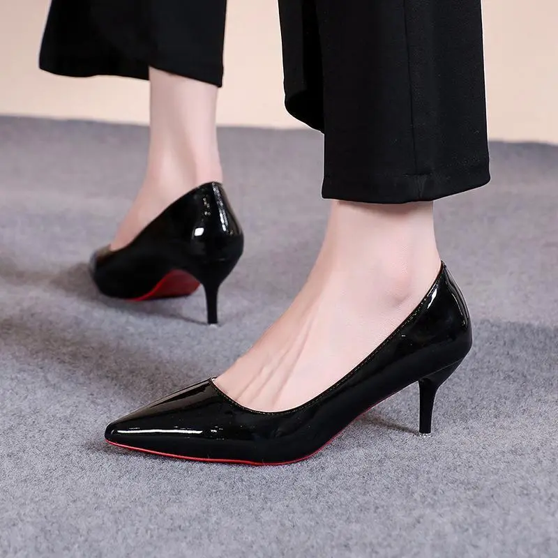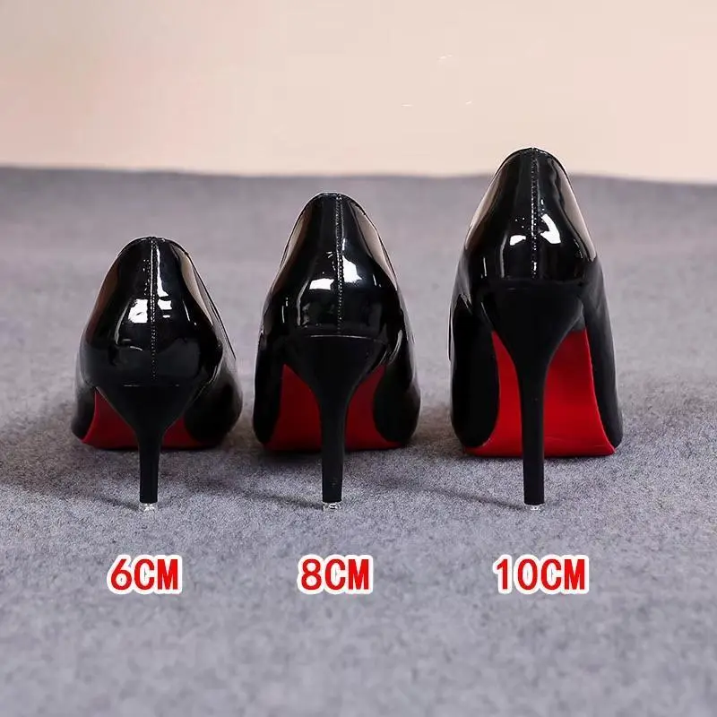 SexyRedSoleThinHeelHighHeelsClassicStyleBlackOfficeWorkShoesPatentLeatherMatteLeatherLadyPumpsPlusSize4243