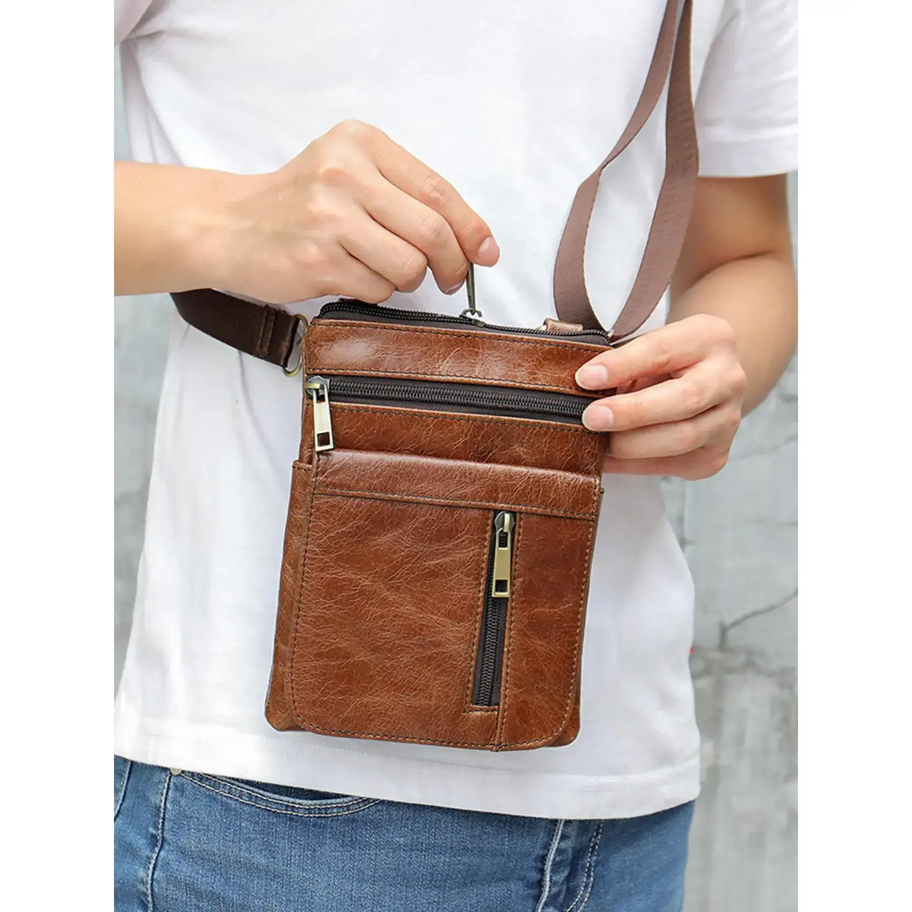 Men's Vintage Leather Crossbody Bag, Casual Solid Color Shoulder Bag with Adjustable Strap, Multiple Compartments, Durable Crossbody Bag for Daily Used