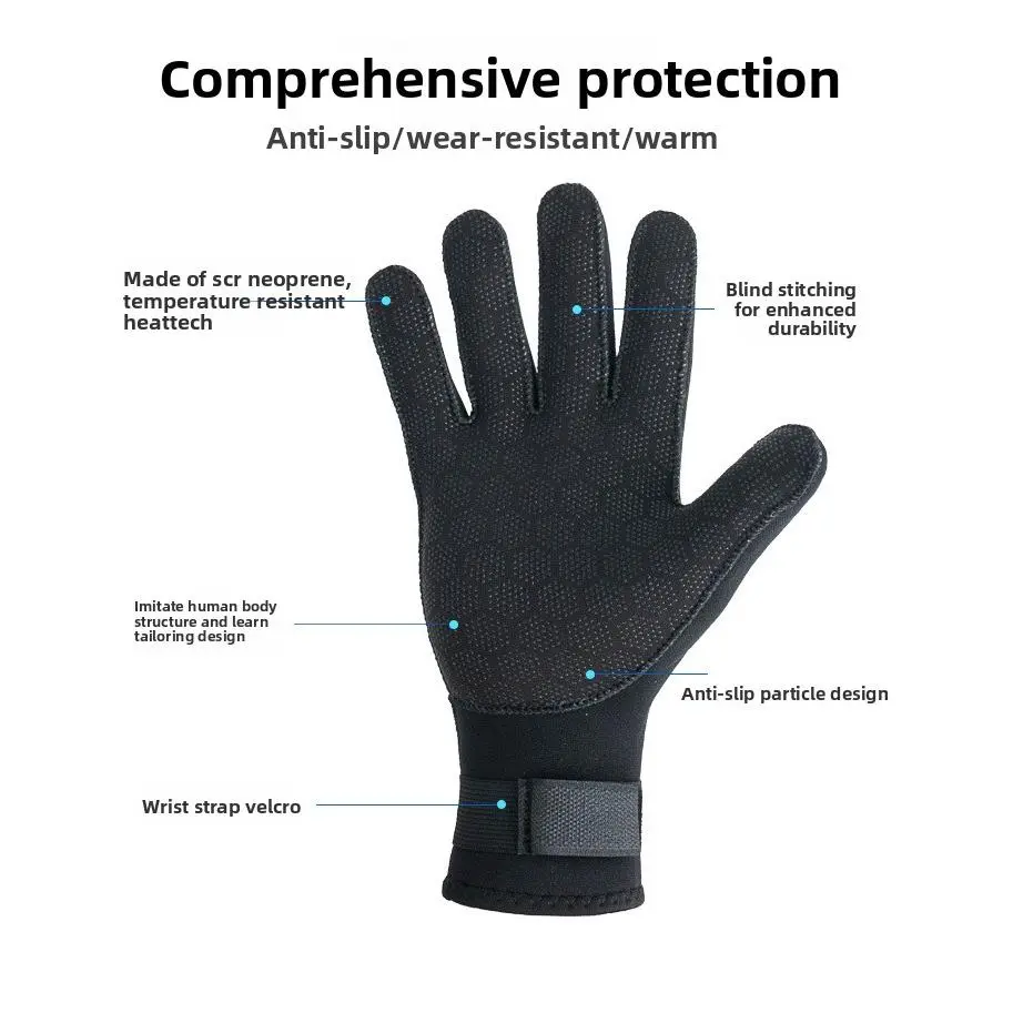 3Mm black diving gloves Epoxy non-slip and anti-wear fishing cycling gloves catch fish
