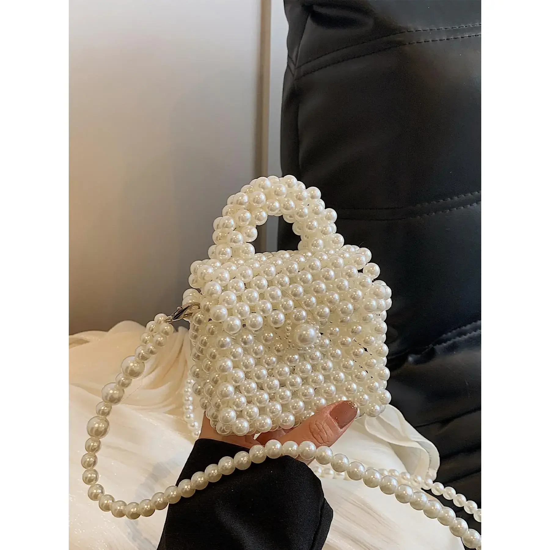 Faux Pearl Decorated Handbag, Simple Design Handbag for Women, Casual Trendy Versatile High-quality Daily Commuting Bag, Girl Fashionable Shopping Bag, Handheld Bag