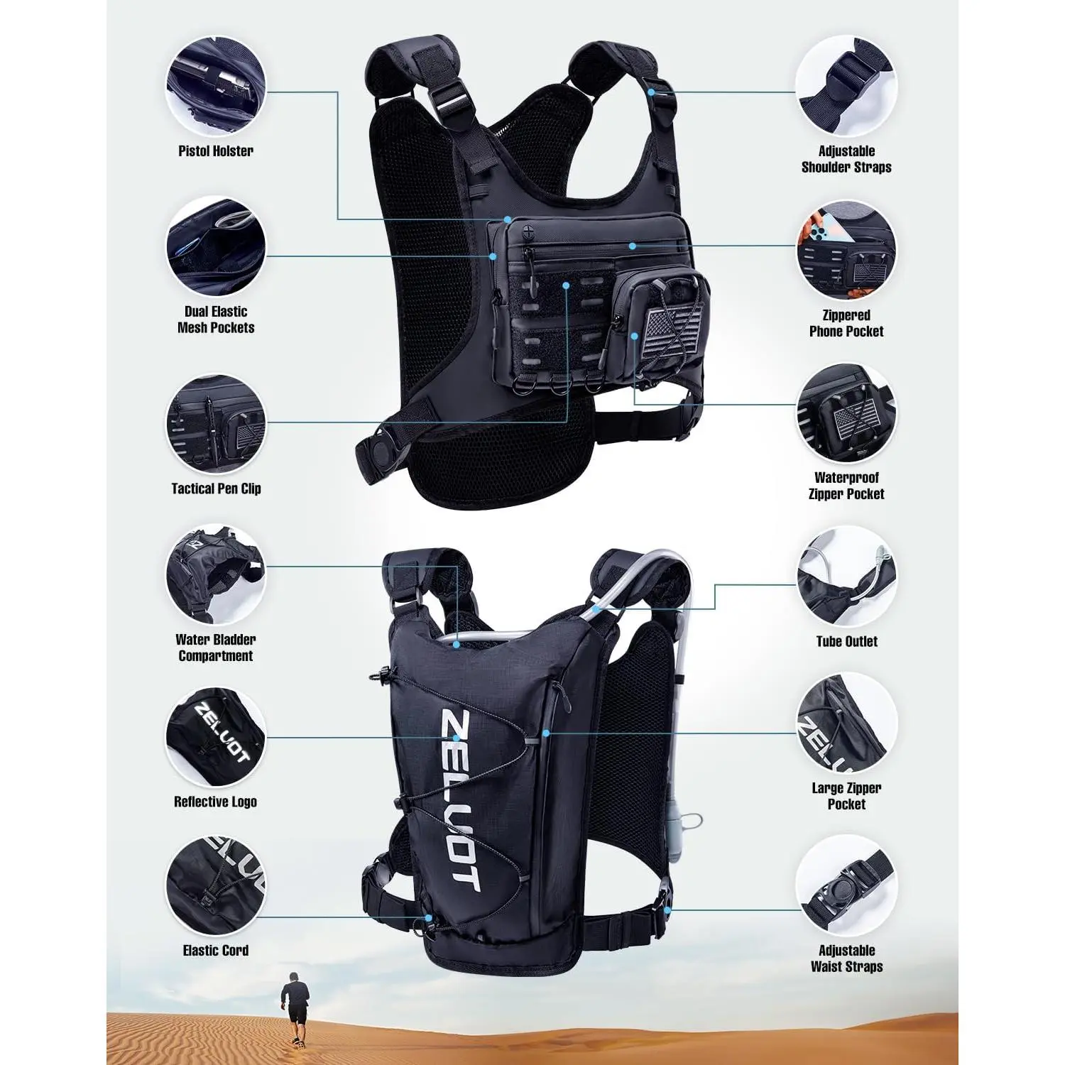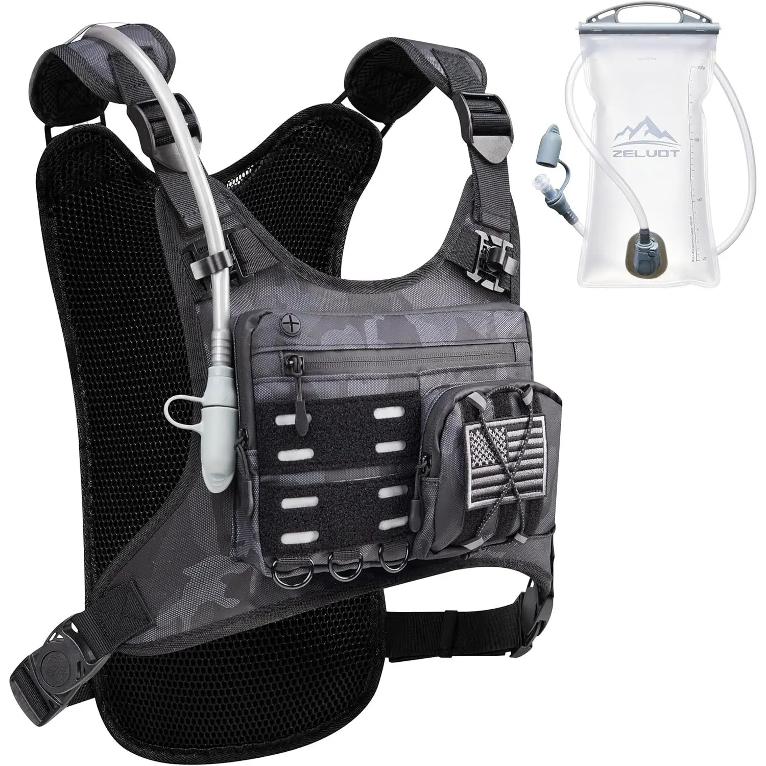 Running Vest with 2L Water Bladder, Hydration Backpack, USA Original Patent, Lightweight Hydration Pack with Gear Holder, Reflective Chest Pack for Men Women for Marathon