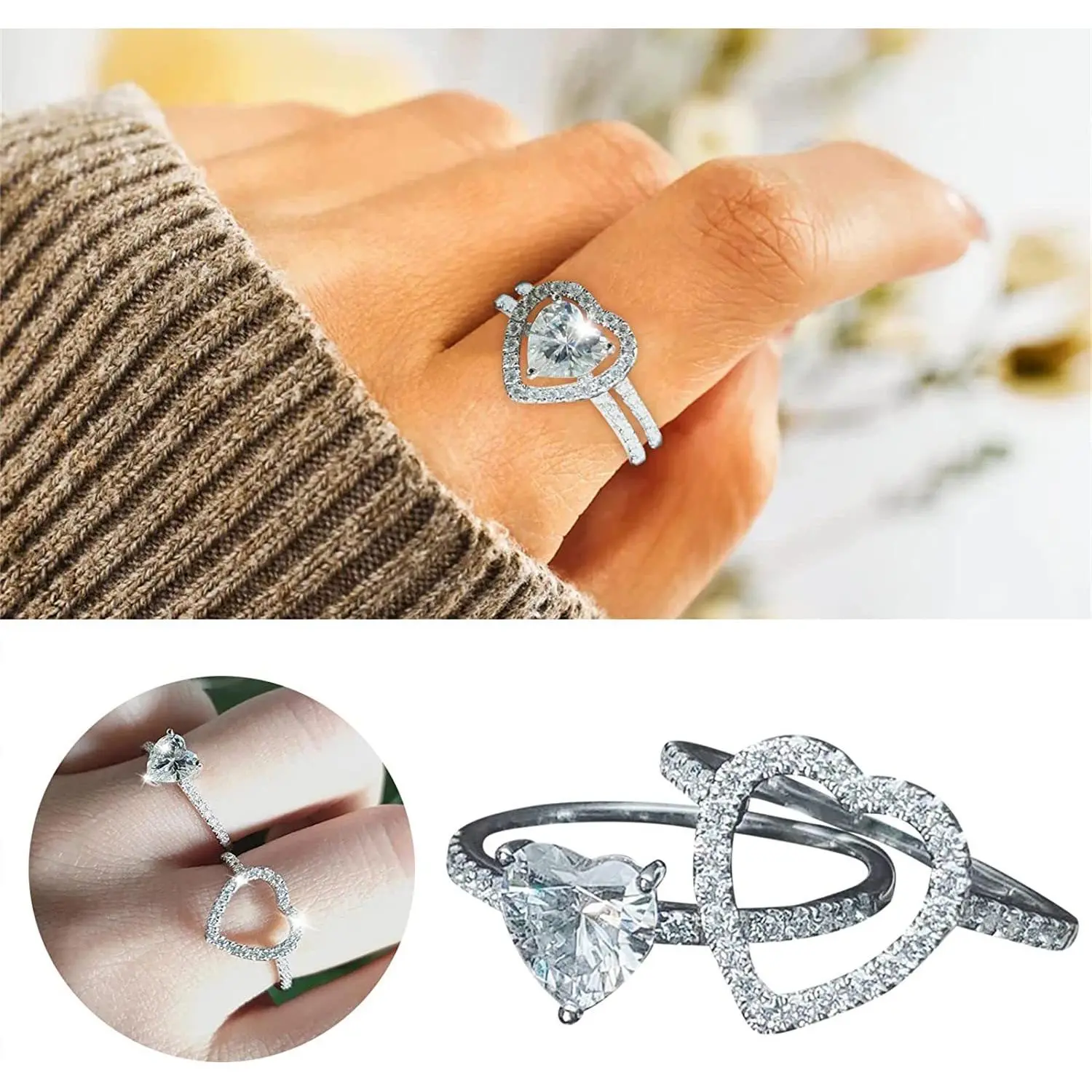 Unique Zircon Heart-Shaped Multifunctional Ring Set with Diamonds, Women's Ring Gift for Wedding Anniversary or Birthday