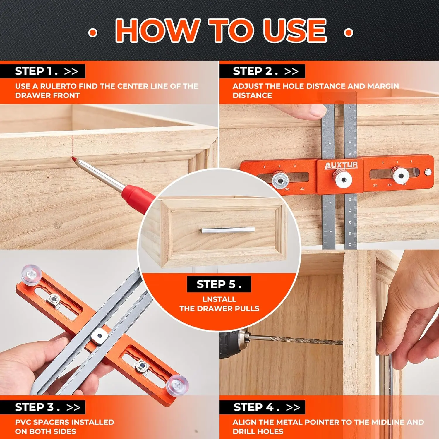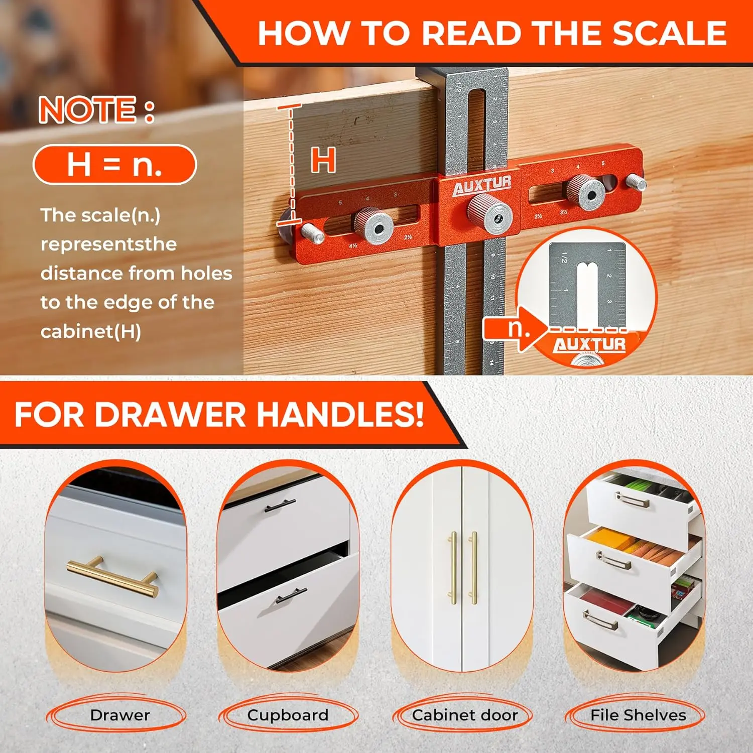Cabinet Hardware Jig, Adjustable Cabinet Handle Template Tool with Alignment Hole, Punch Locator Drill Guide for Knobs,Handles and Pulls, Cabinet Template Tool for Drawer Cabinet Installation