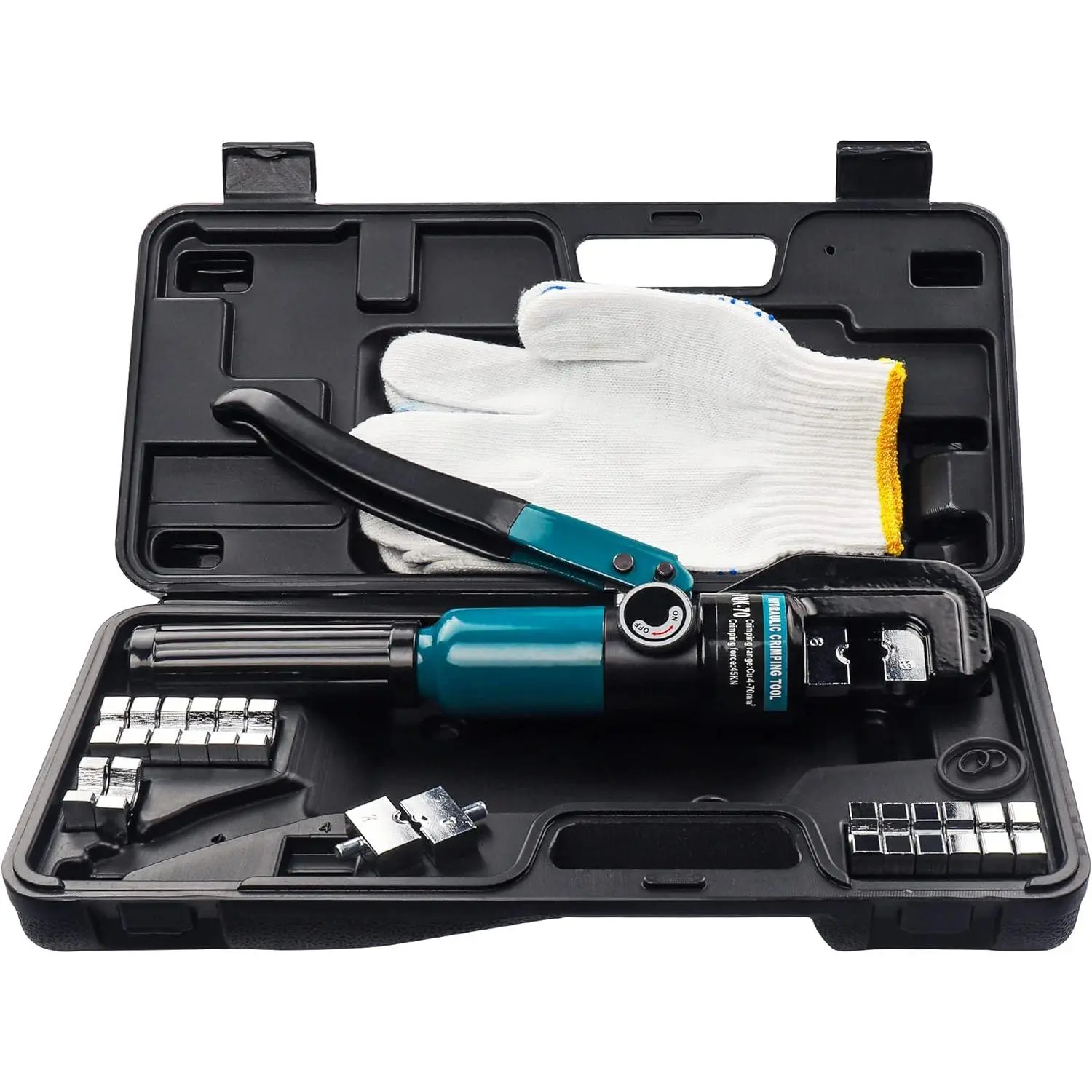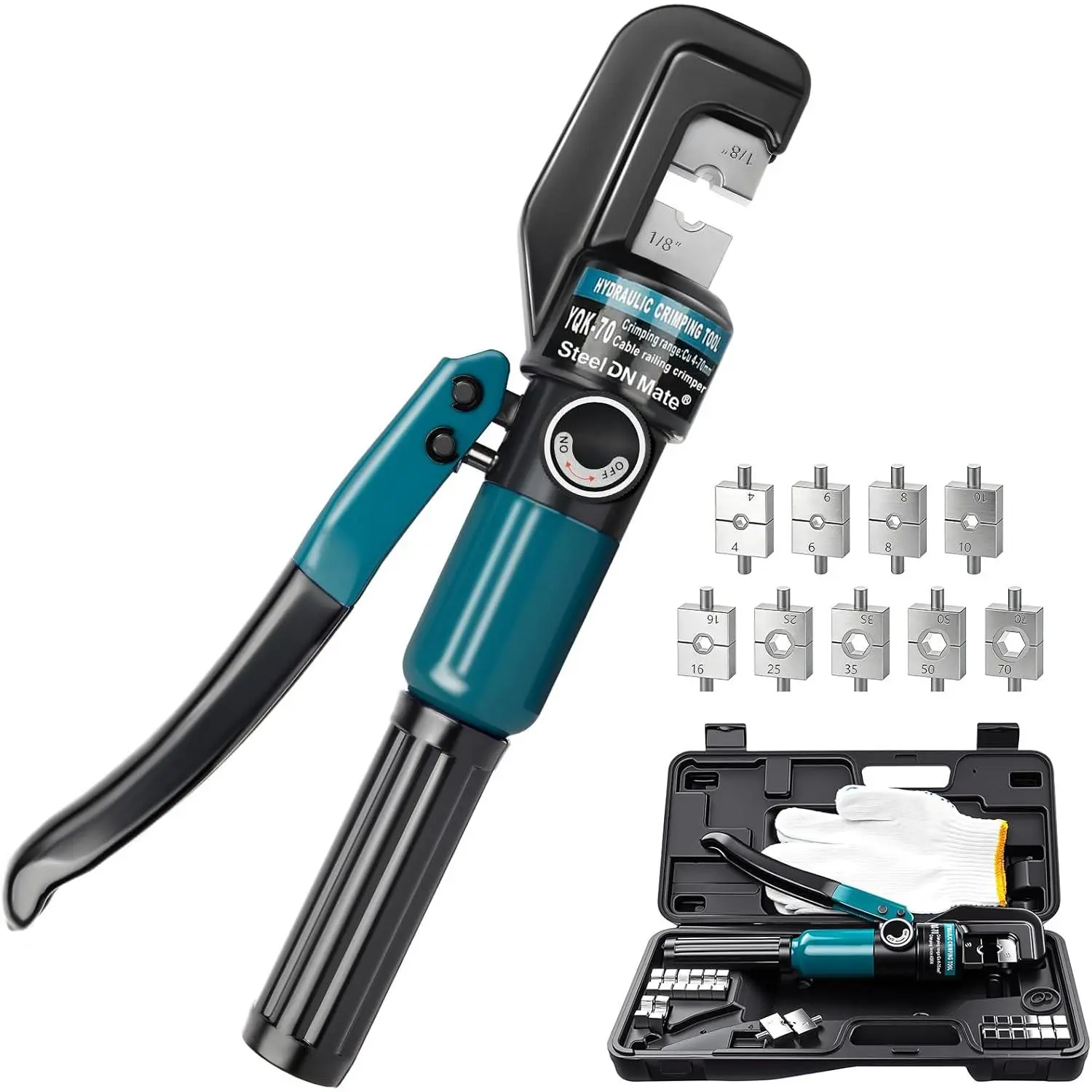 Hydraulic Crimping Tool for 1/8"-3/16" Cable Railing, Easy One-Hand Use, 10-Ton Crimper with 9 Harden Dies for 12-2/0 AWG, Steel DN Mate Durable Wire Crimper, Battery Cable Crimper DC01