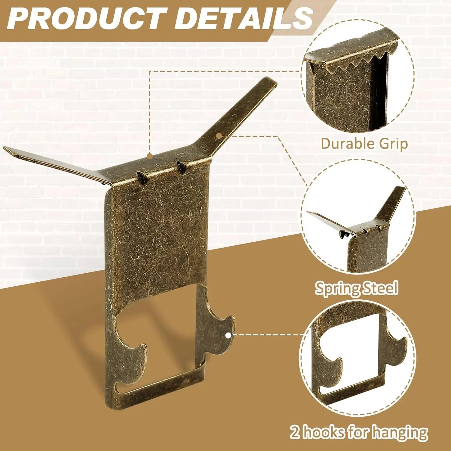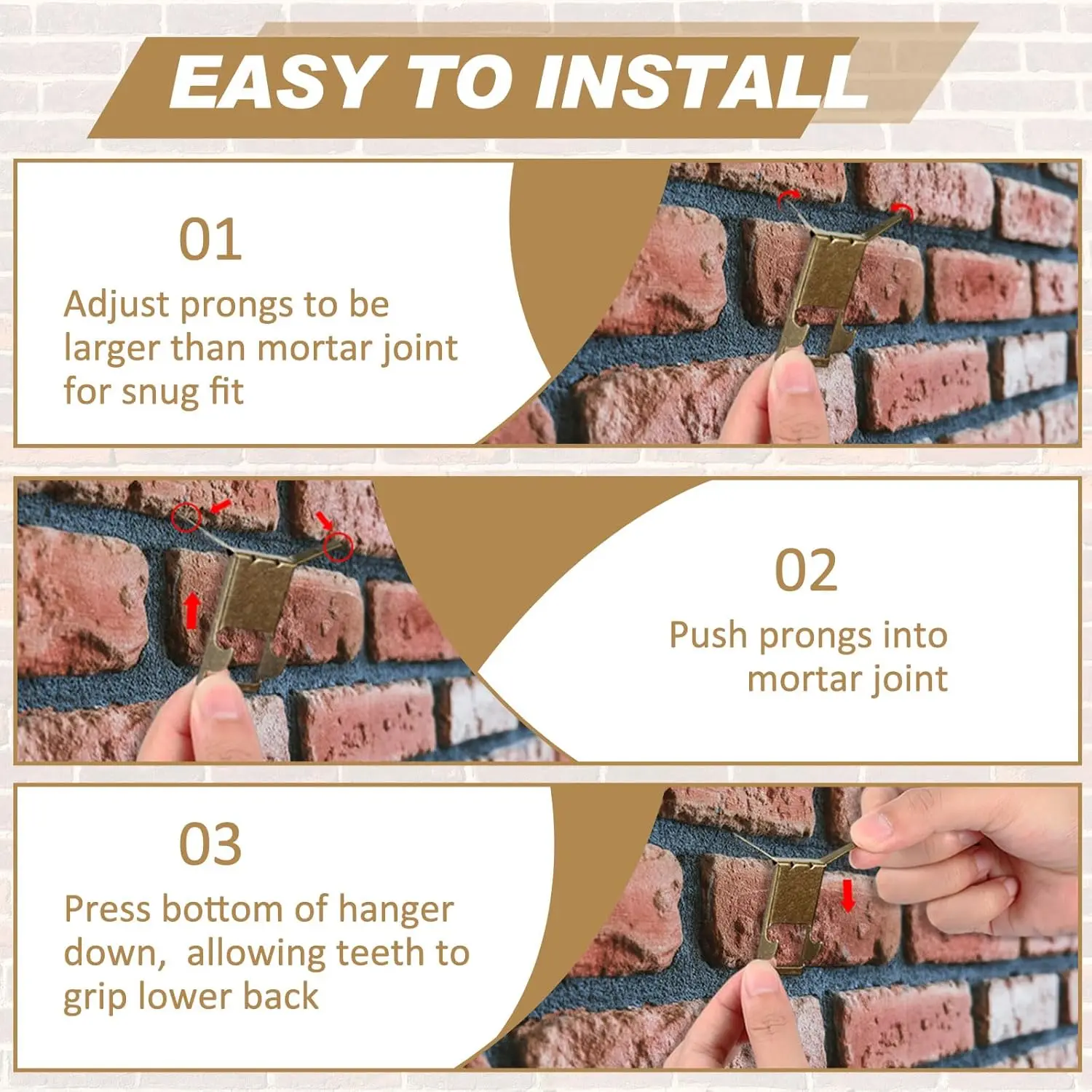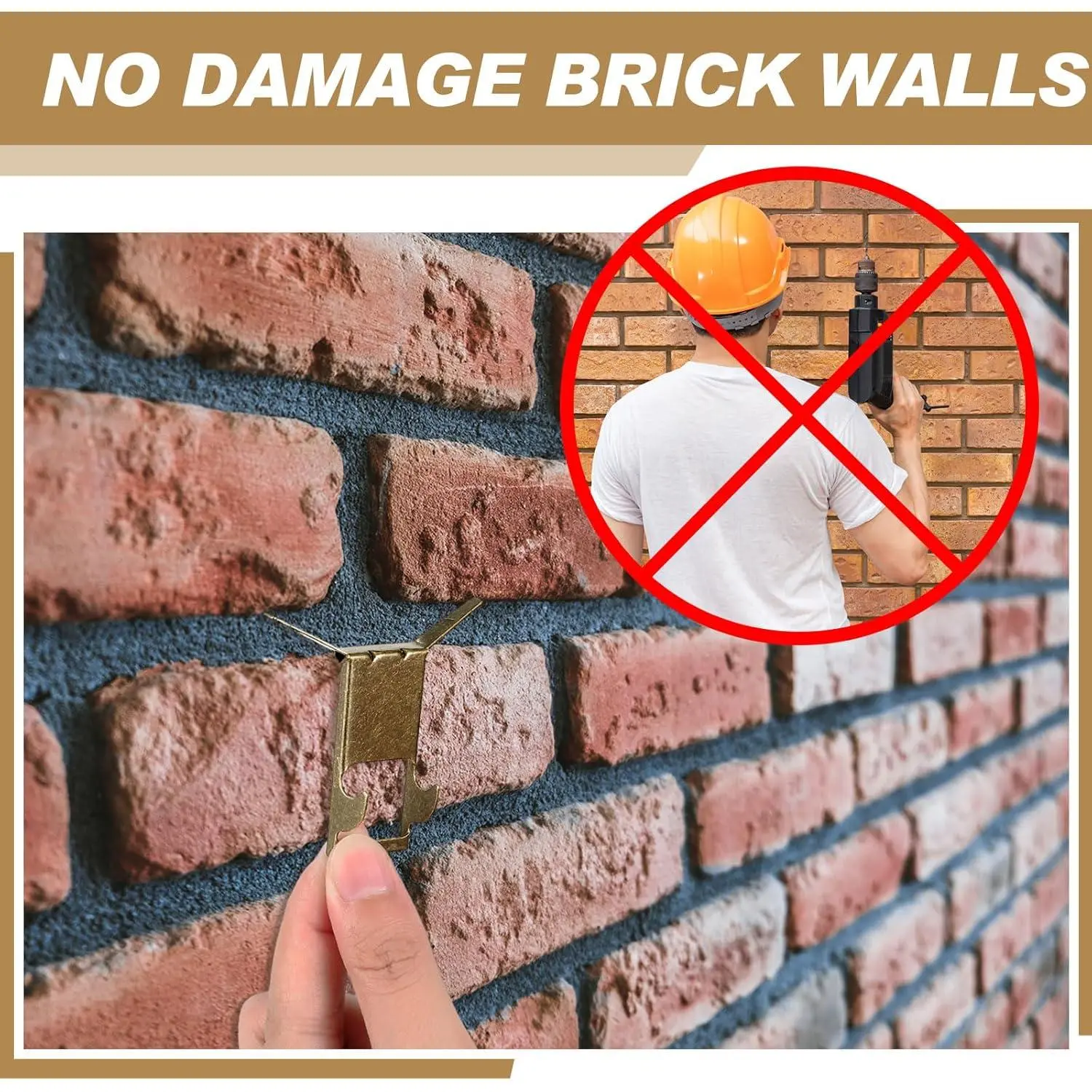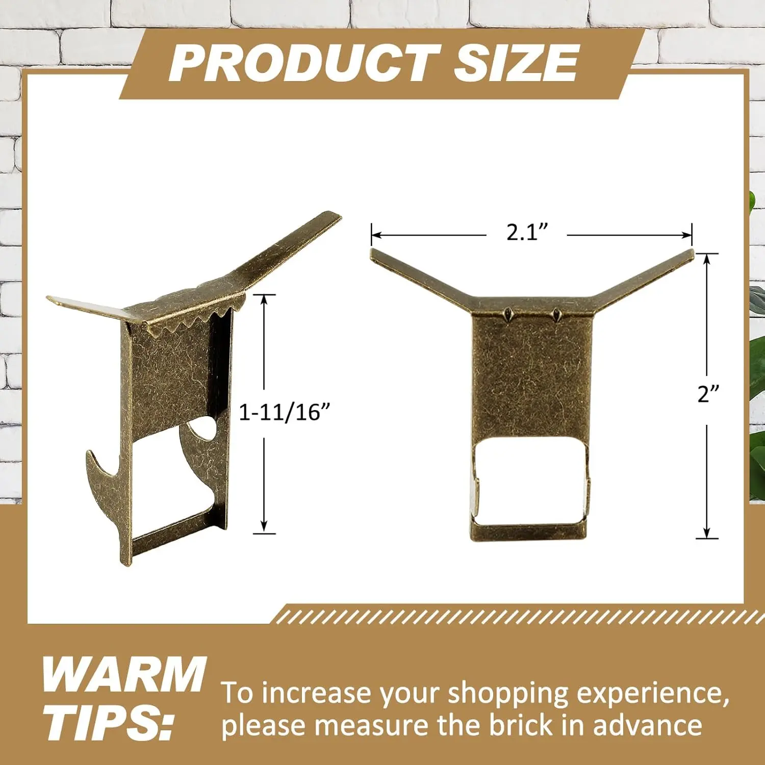 20 Pcs Brick Wall Hangers Clips no Drill Outdoor for Hanging Christmas Lights Stocking Holders Steel Picture Decoration Hanger Fastener for Fireplace (Antique Brass)