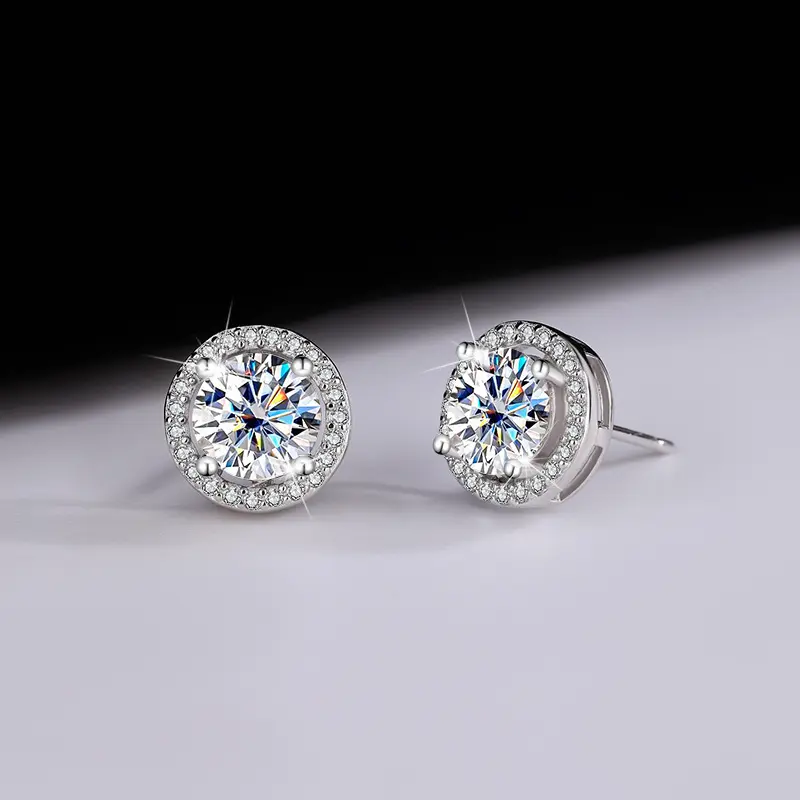 Women's Full Diamond Stud Earrings, Single-Carat Princess Round Cut Simulated Moissanite Earrings, Women's Ear Jewelry