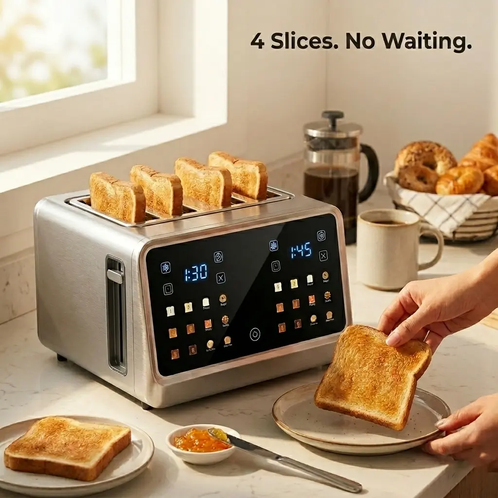 5. Dear Morning Digital Smart Toaster 4 Slice with Touchscreen Dual Control Panel Single Slot Timer Reheat Defrost for Bagels Bread Waffles Stainless Steel Kitchen Essentials