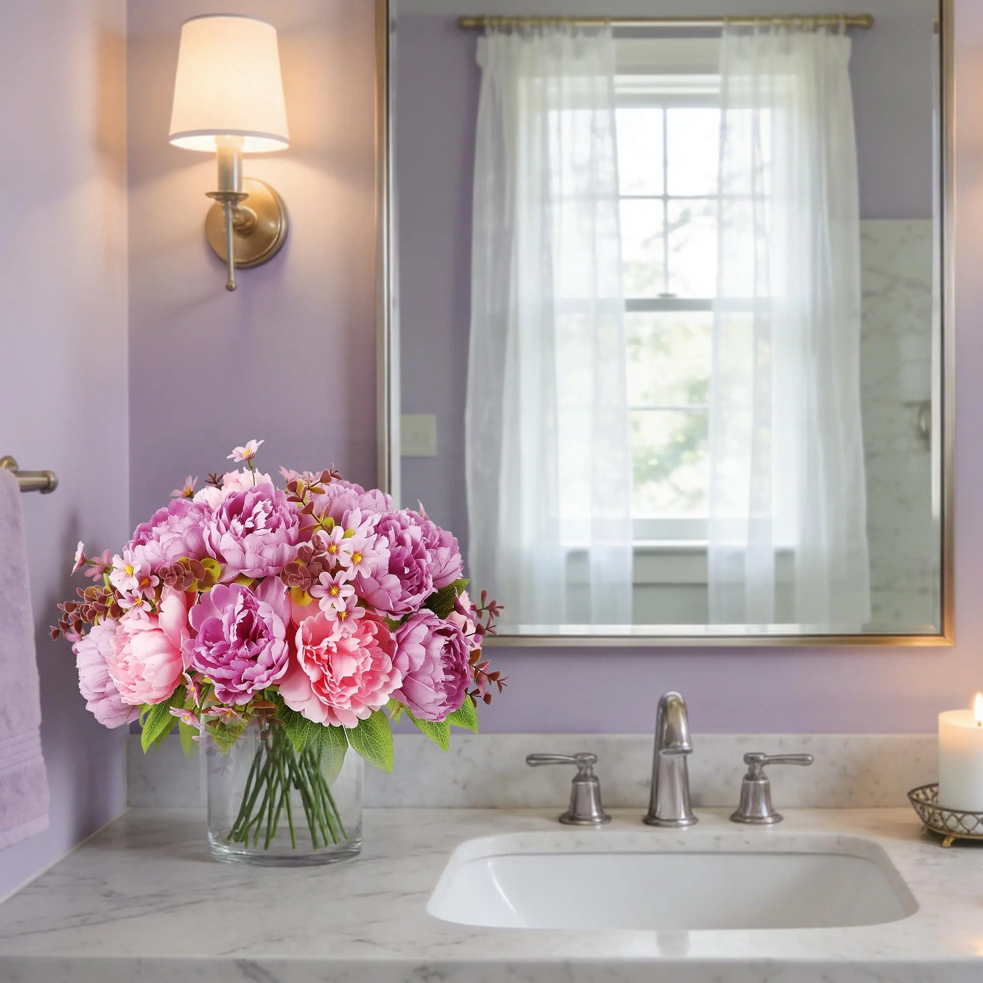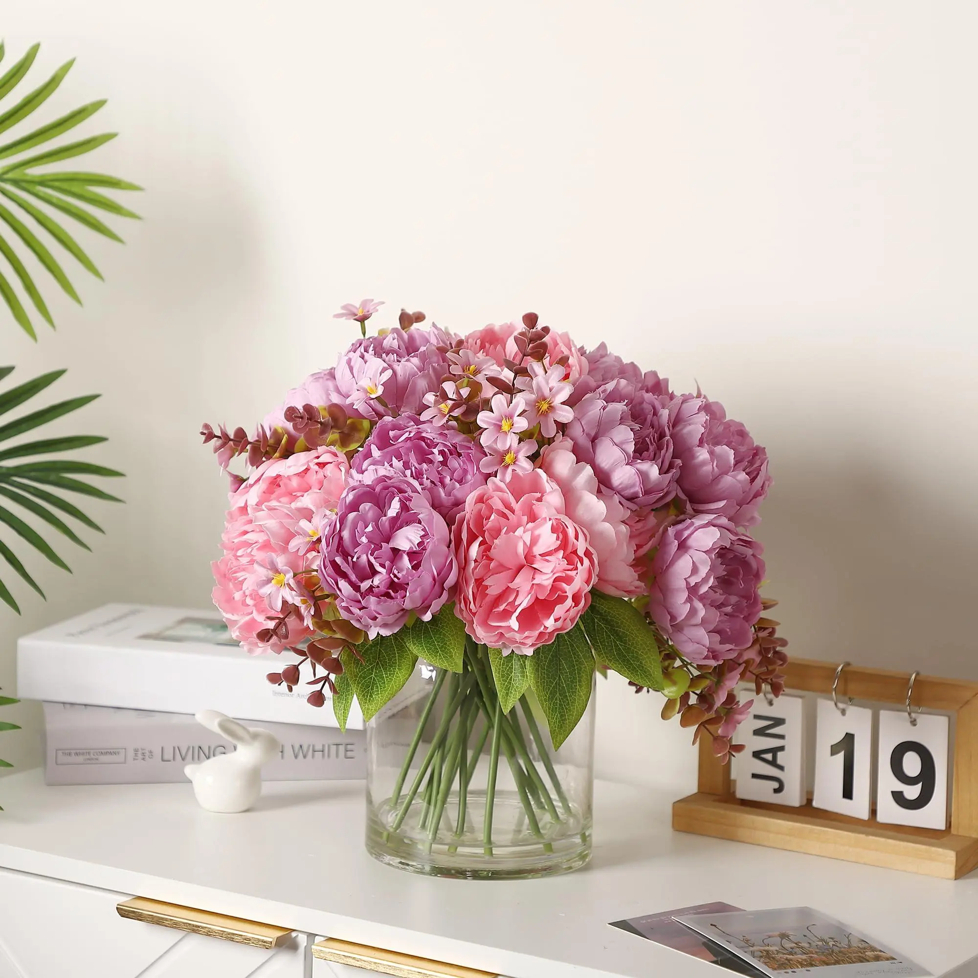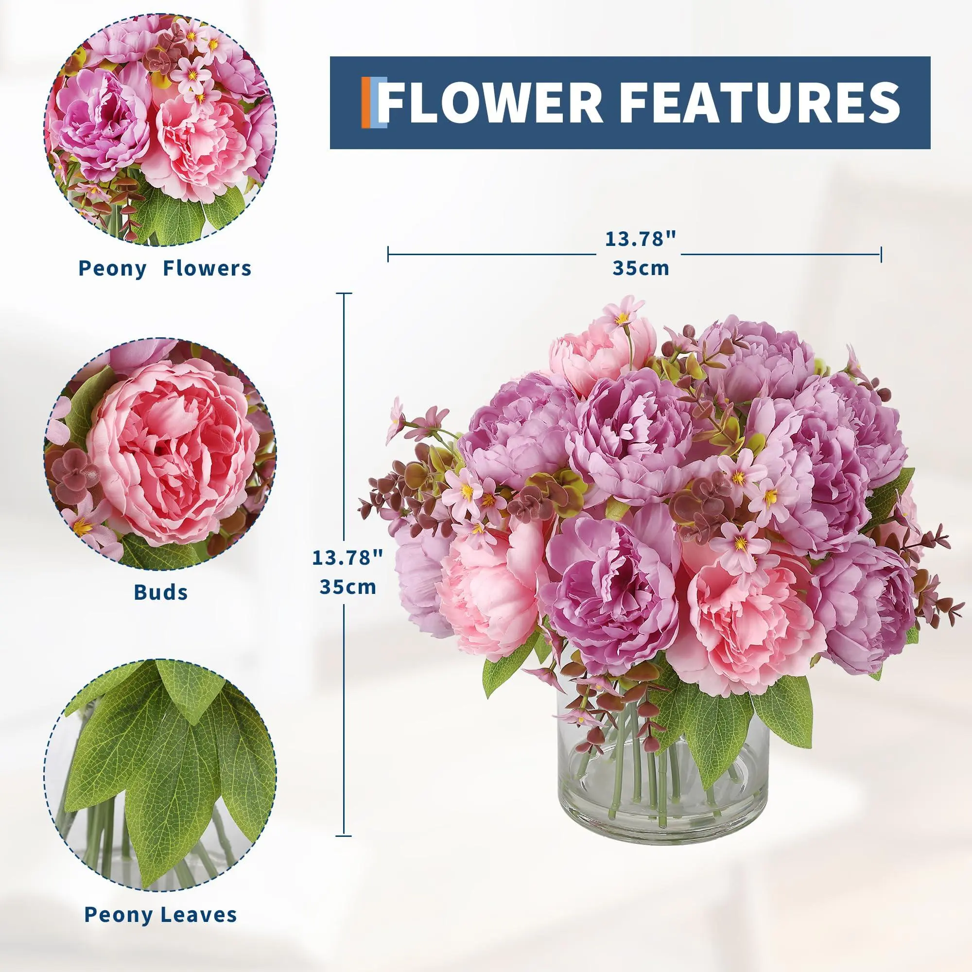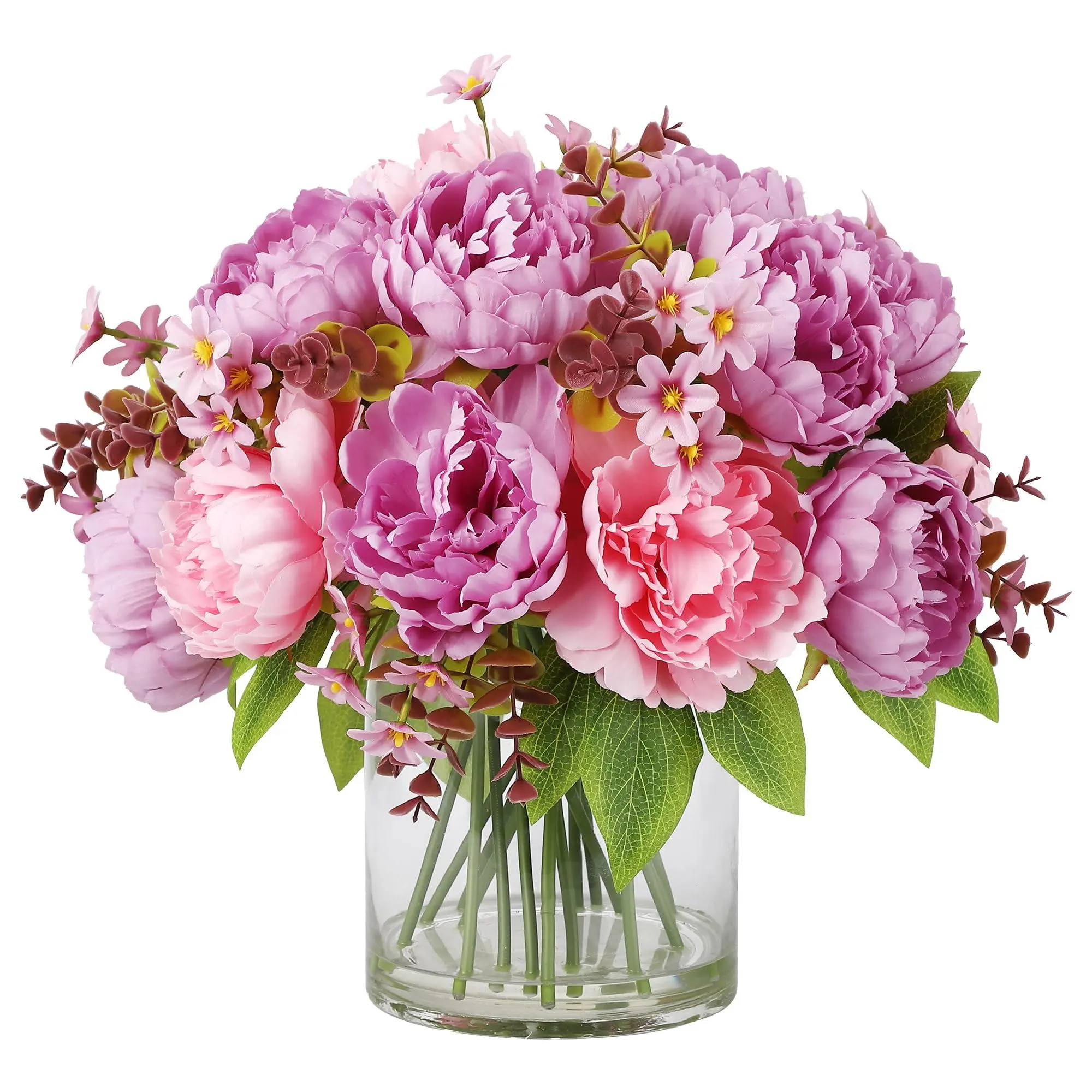 Romantic Ambiance: This 17-piece silk peony bouquet in a glass vase adds a romantic touch to any space. The realistic 3D-printed petals and vibrant colors offer lasting elegance without any maintenance