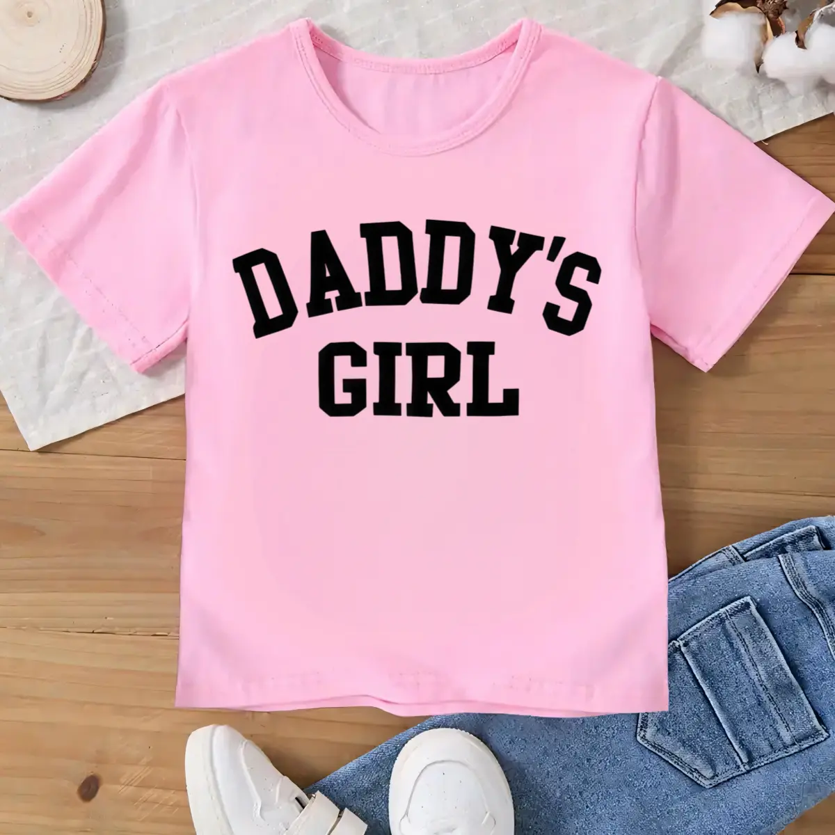 Summer Fashion Girls' Short-Sleeve T-Shirt "Daddy's Girl" Letter Print Casual Top 100% Cotton