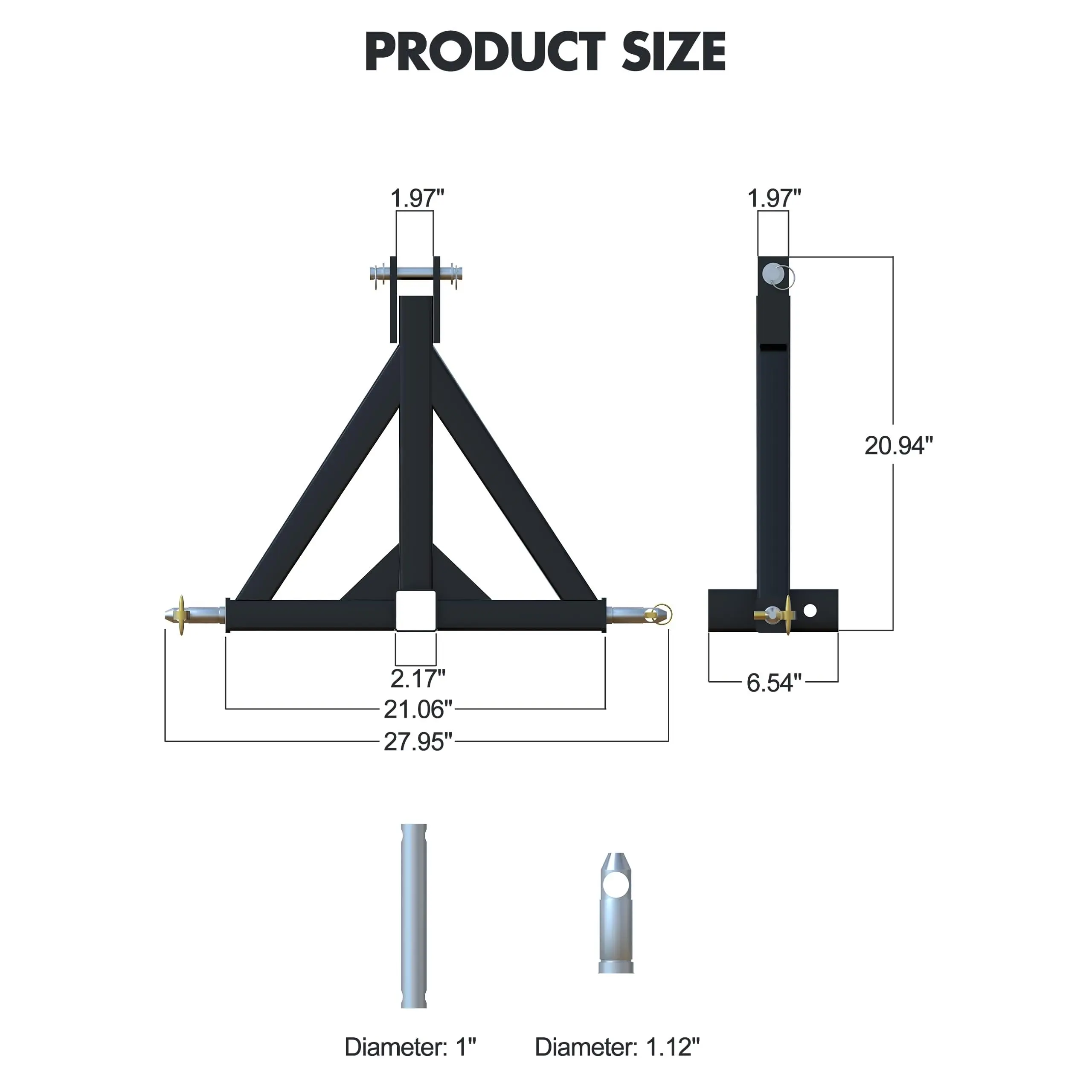 BOTTOM PIN TUBE DESIGN: Featuring a 7/8-inch diameter CAT 1 lifting pin, this hitch accommodates both compact and full-size tractors. The precision-engineered tube ensures stable engagement with lift arms, reducing wobble and enhancing towing safety during high-stress operations