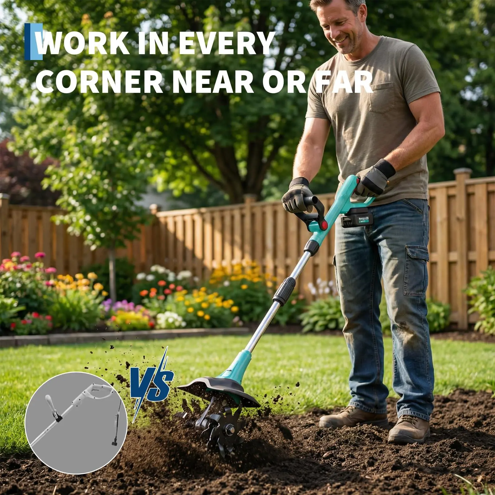 CORDLESS CONVENIENCE: Cordless design eliminates the need for power outlets, giving you the freedom to work anywhere without tangled cords or limited reach. Ideal for gardens, raised beds, and hard-to-access areas.