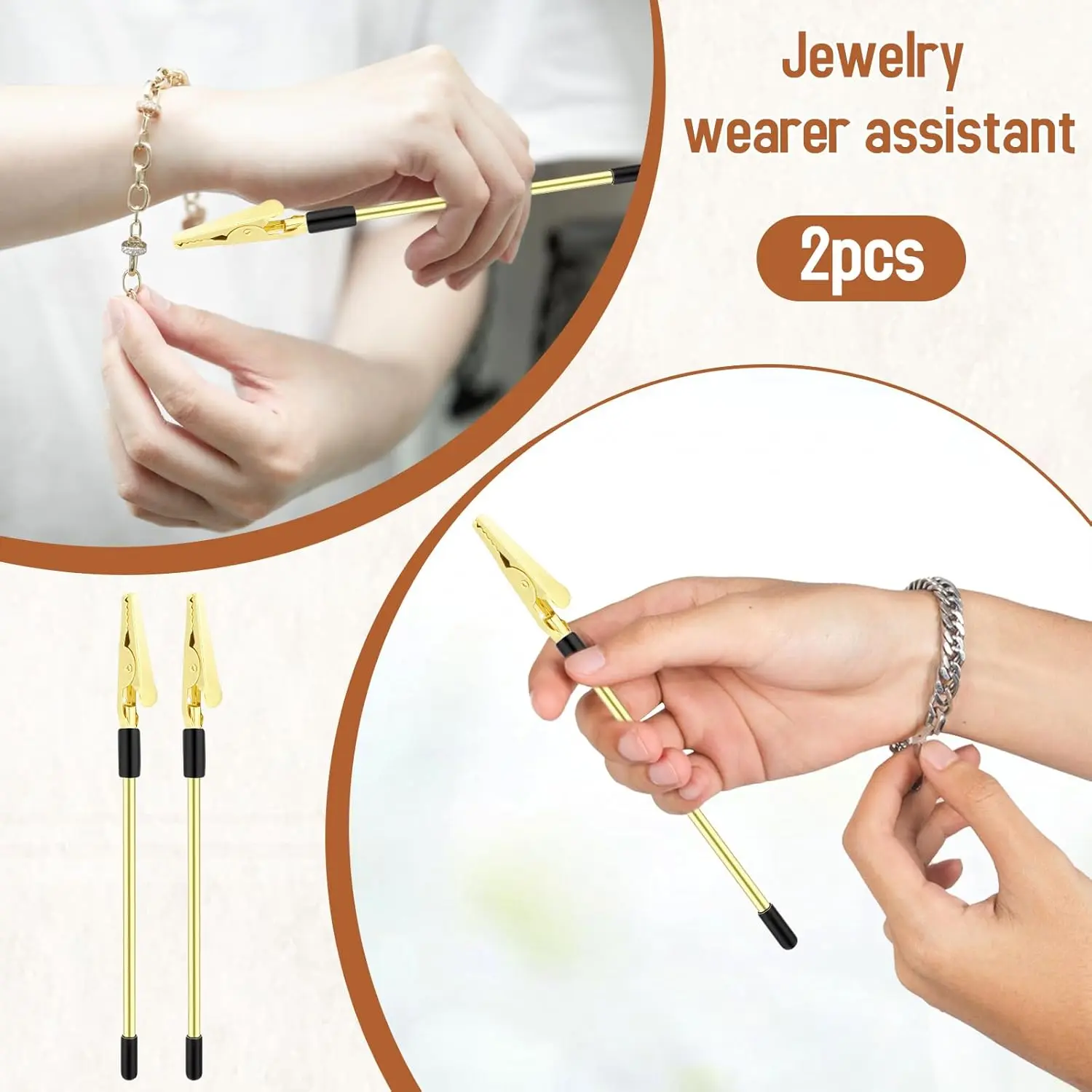 Bracelet Helper Tool to Put on Yourself, 2 Pcs Hand Bracelets Fasten Helper Alligator Clips for Women Fastening and Hooking Equipment for Jewelry Necklace Watch Clasps Ties Zippers