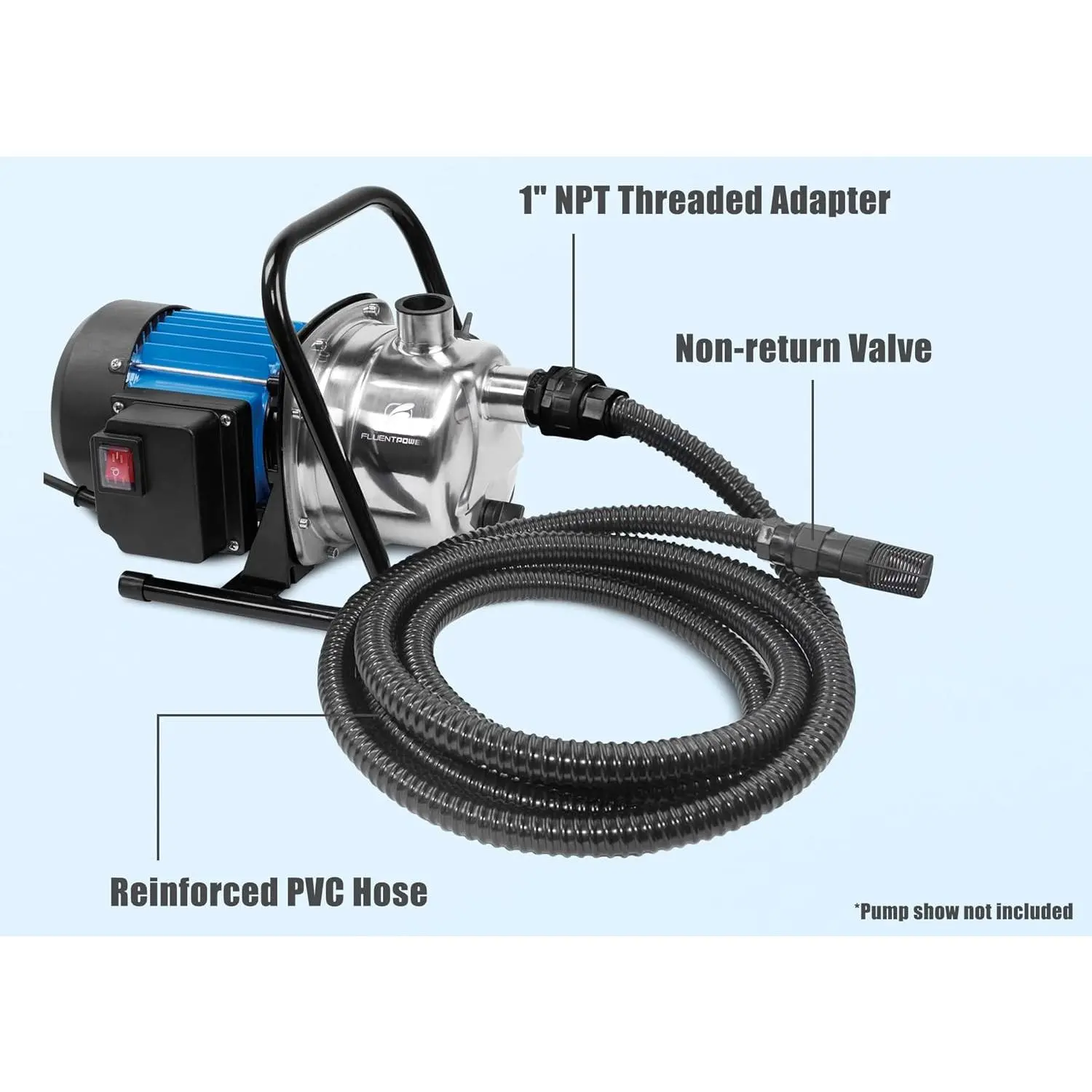 13FT x 1" Suction Hose Kit with Check Valve, Corrugated Pipe 13ft Long, Water Intake Hose Set, Aspiration Hose for Shallow Well Sprinkler Garden Booster Pump with 1" Female Inlet