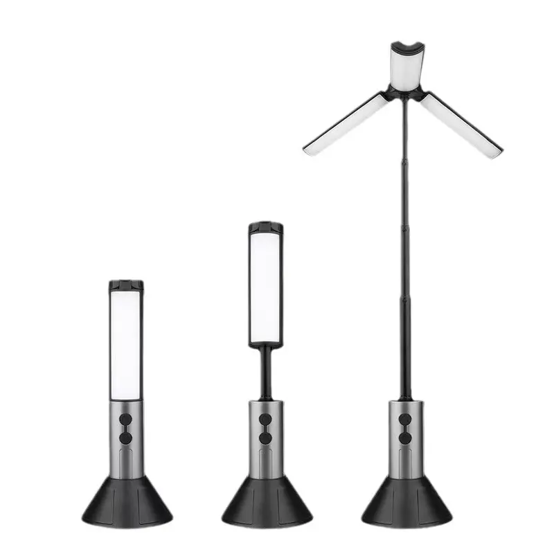 The 4‑section telescopic pole extends from 25.2 cm up to 51.8 cm, allowing you to set the perfect lighting height. The lamp head rotates 270°, directing light exactly where you need it – whether overhead, sideways, or as a focused task light.