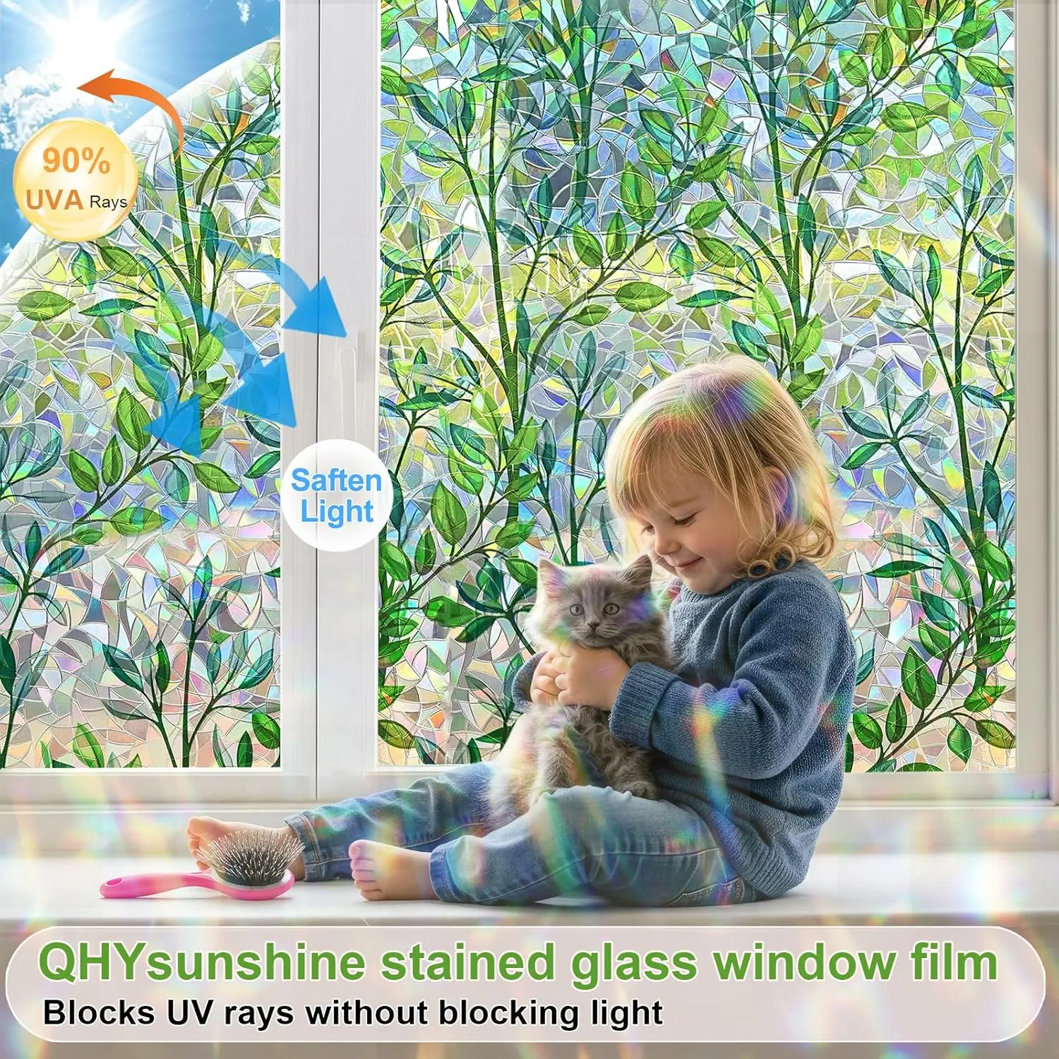 ·DECORATIVE DESIGN: These window films feature a beautiful green leaf pattern that adds a natural freshness to any room and creates a rainbow visual effect when the sun shines.