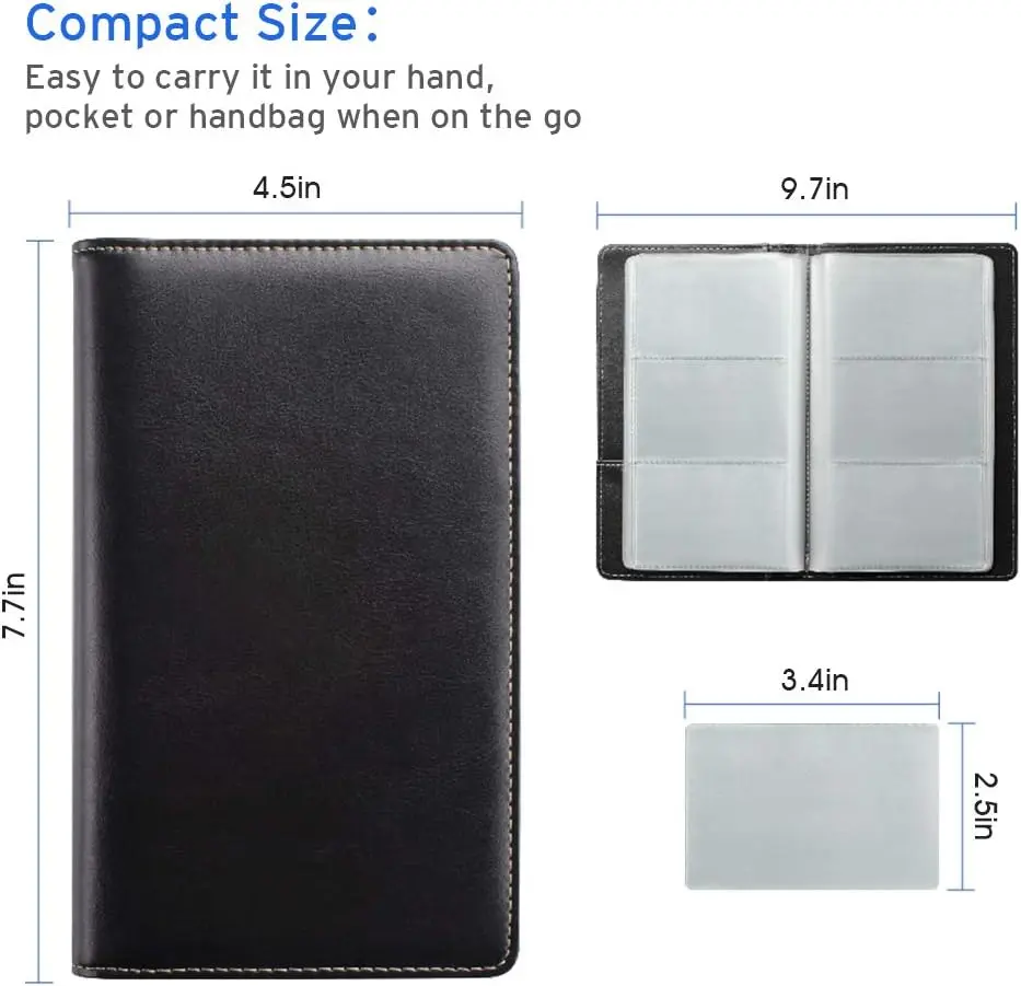 ·Compact size business card folder: The slim profile and lightweight design make carrying a breeze – Carry it in your hand, pocket or handbag when on the go. Dimensions: 7.7"x 4.5" x 0.7"