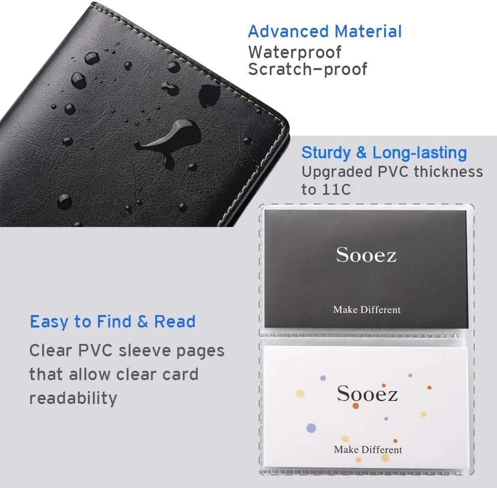 ·Sturdy & Long-lasting card book: Name card holder is made from high-quality pu leather cover and PVC pocket sheets. Long-lasting and sturdy