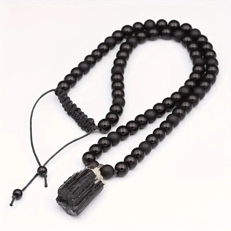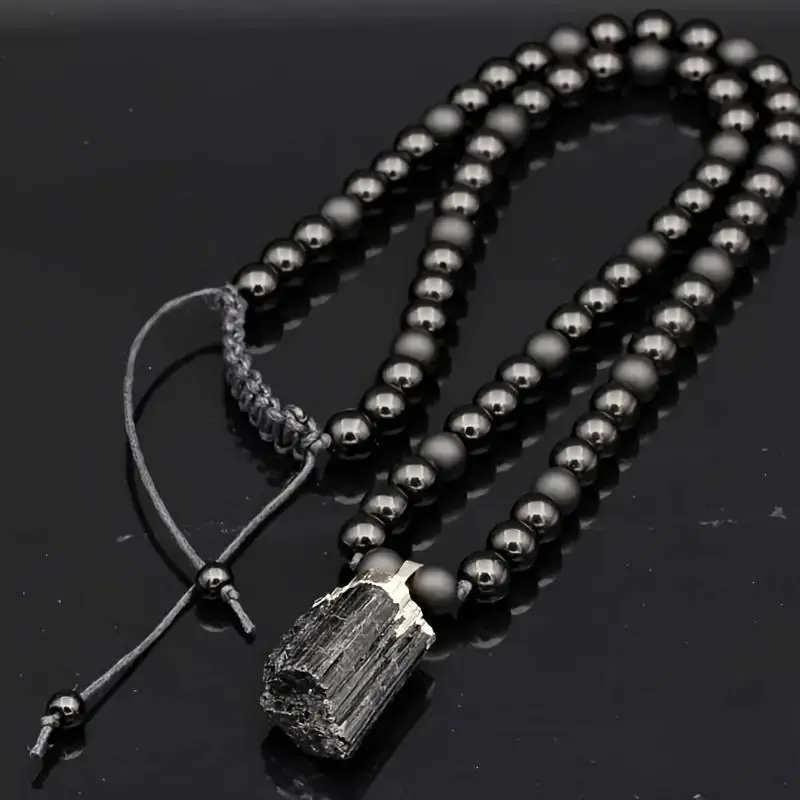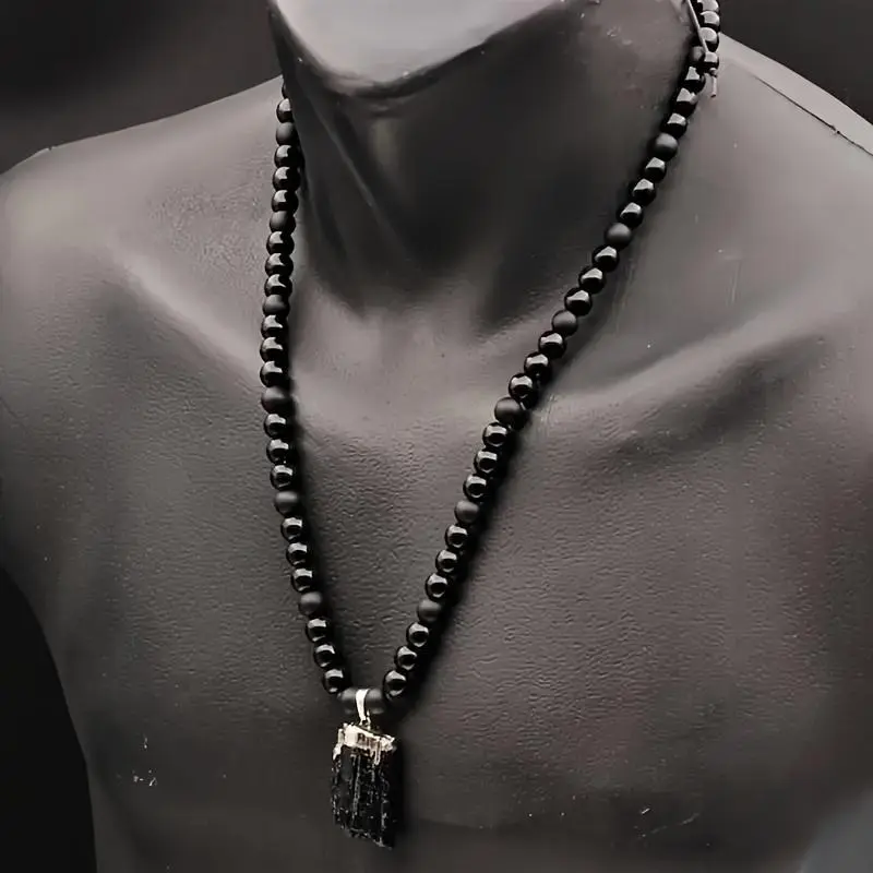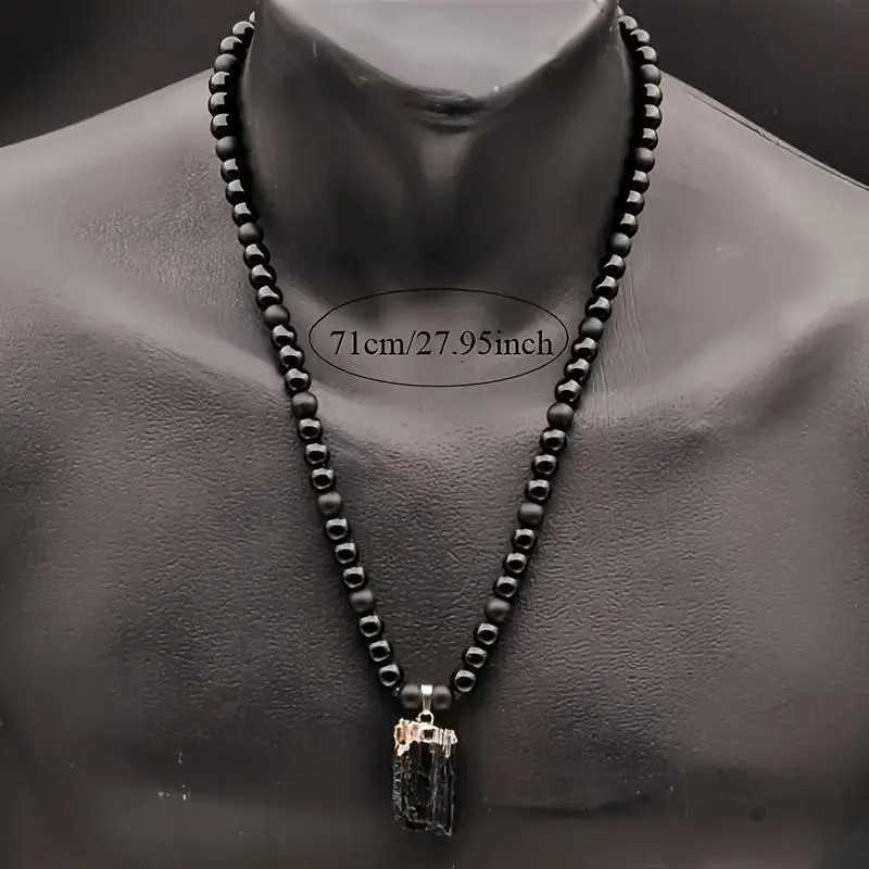 Raw Tourmaline Pendant Natural Black Onyx Gemstone Protection Stone Necklace Black Men's Necklace Gift For Him Unisex Necklace