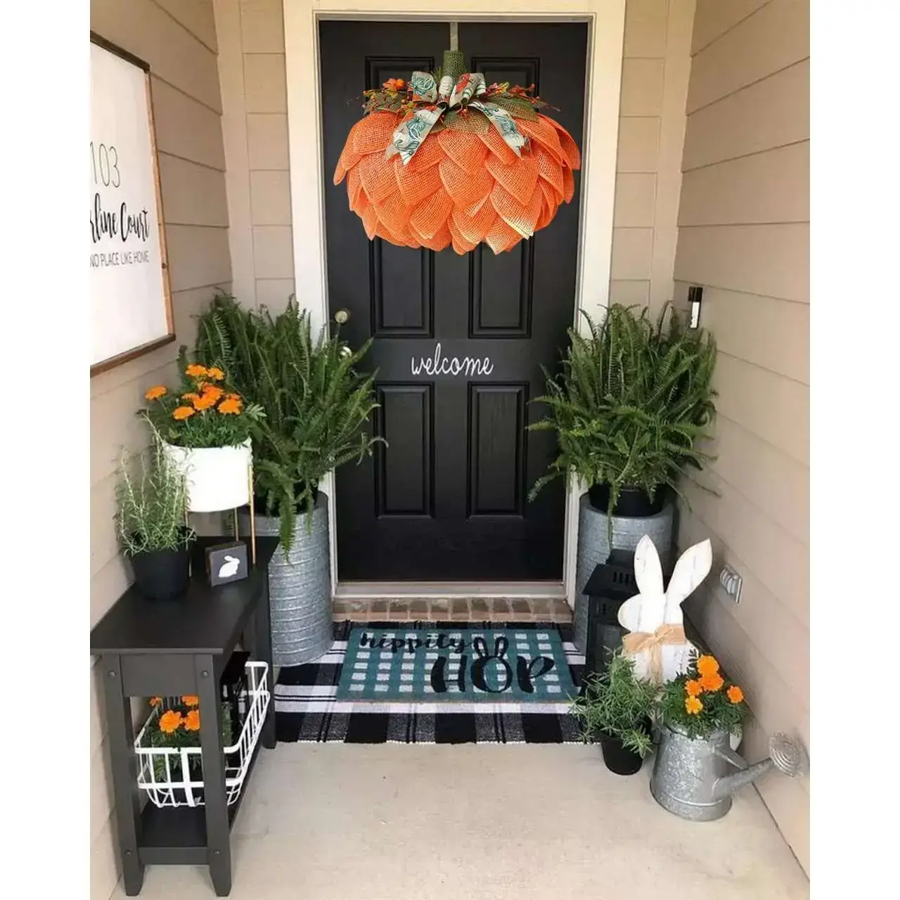 Welcome autumn with our charming Autumn Pumpkin Front Door Wreath. This rustic country wreath, measuring 15 3/4 inches x 15 3/4 inches, is the perfect addition to your fall decor. Crafted with care, this pumpkin wreath captures the essence of the season and adds a warm touch to your front door. Embrace the beauty of fall with this delightful wreath.
