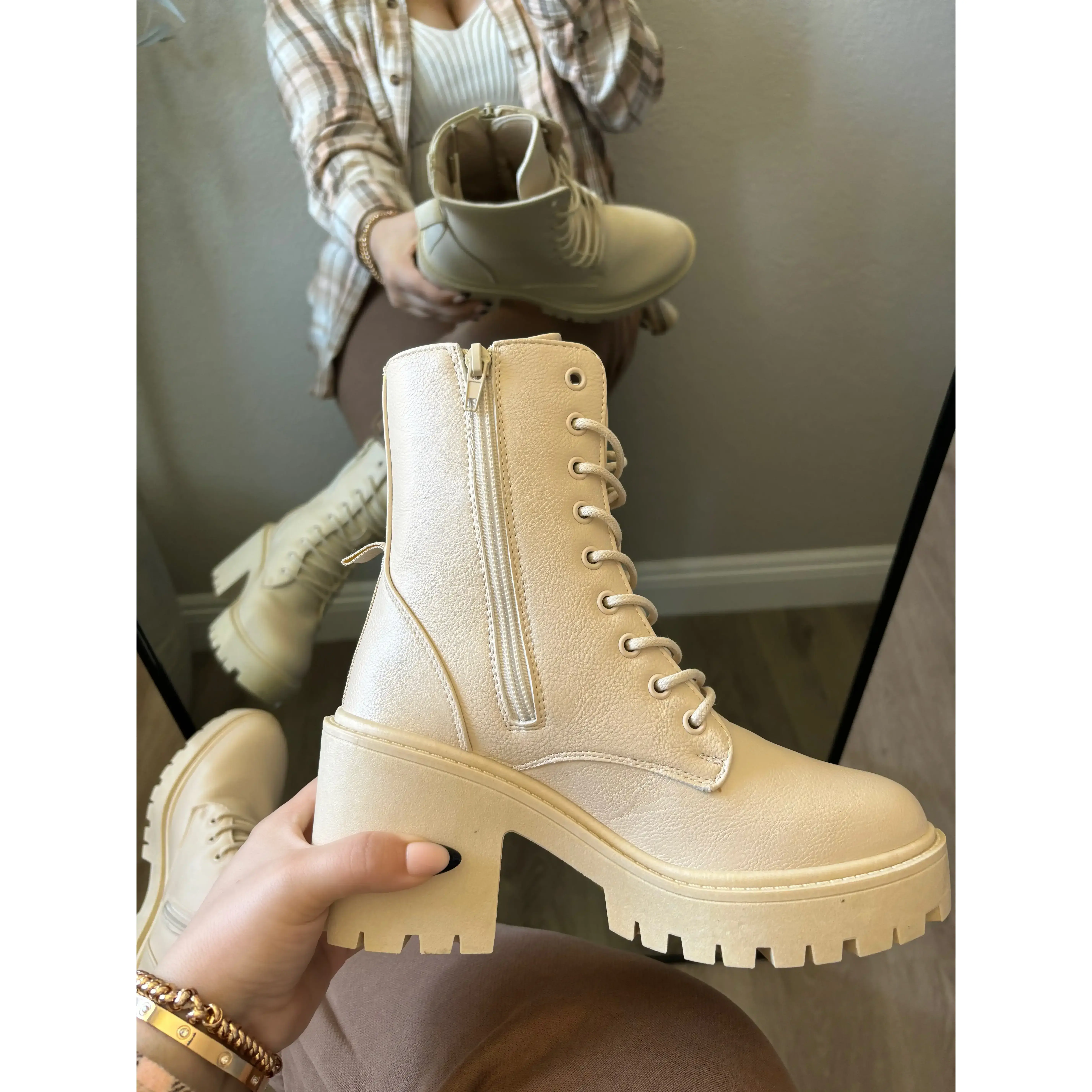Cream Combat Boot