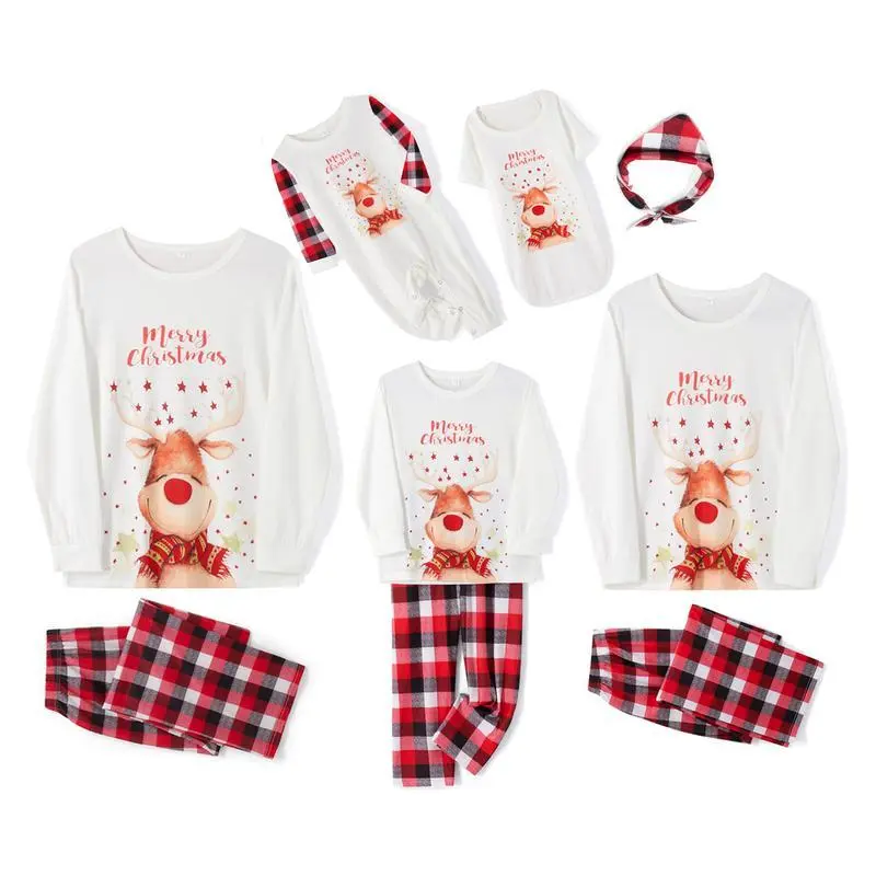 Parent-Child Christmas Nightclothes, Long Sleeve Round Neck Elk Print Tops Trousers Suit for Adults Kids / Baby Romper / Dog Shirt Mom size: S-M-L-XL-XXL; Dad size: S-M-L-XL-XXL; Kid size: 2 Years, 3-4 Years, 4-5 Years, 6-7 Years, 8-9 Years, 10-11 Years, 11-12 Years, 13-14 Years; Baby size: 0-6 Months, 6-12 Months, 12-18 Months, 18-24 Months; Dog size: S-M-L. Season: spring / fall Pattern: elk print Occasion: leisure time, bedroom 1 * tops + 1 * pants 1 * romper 1 * dog wear