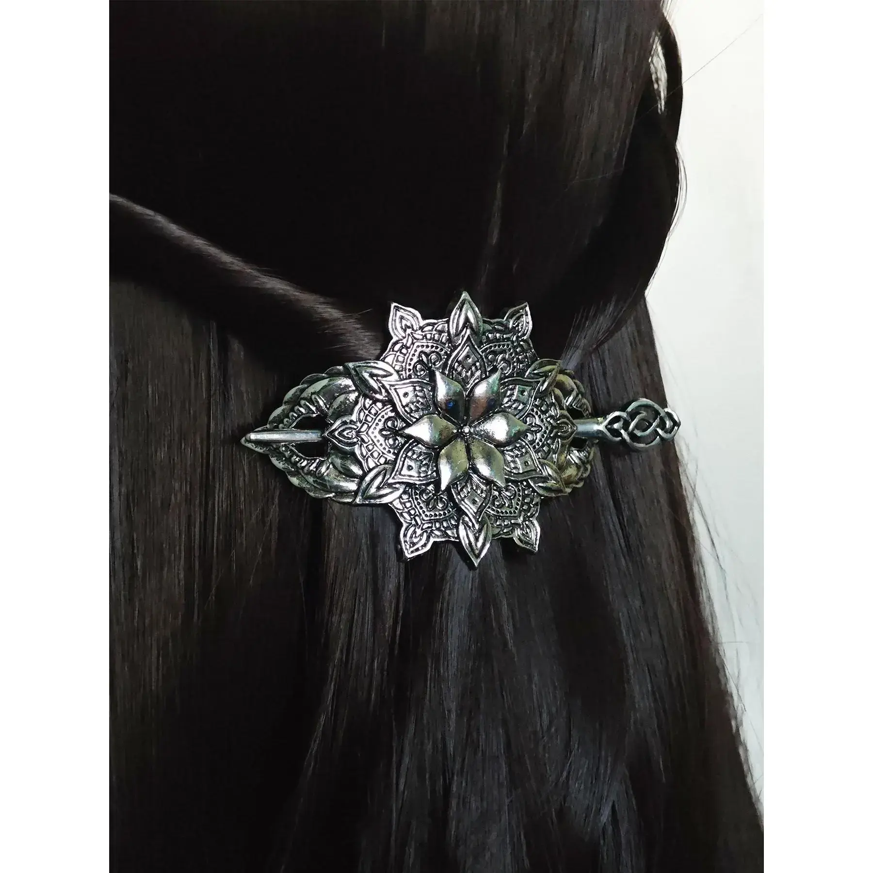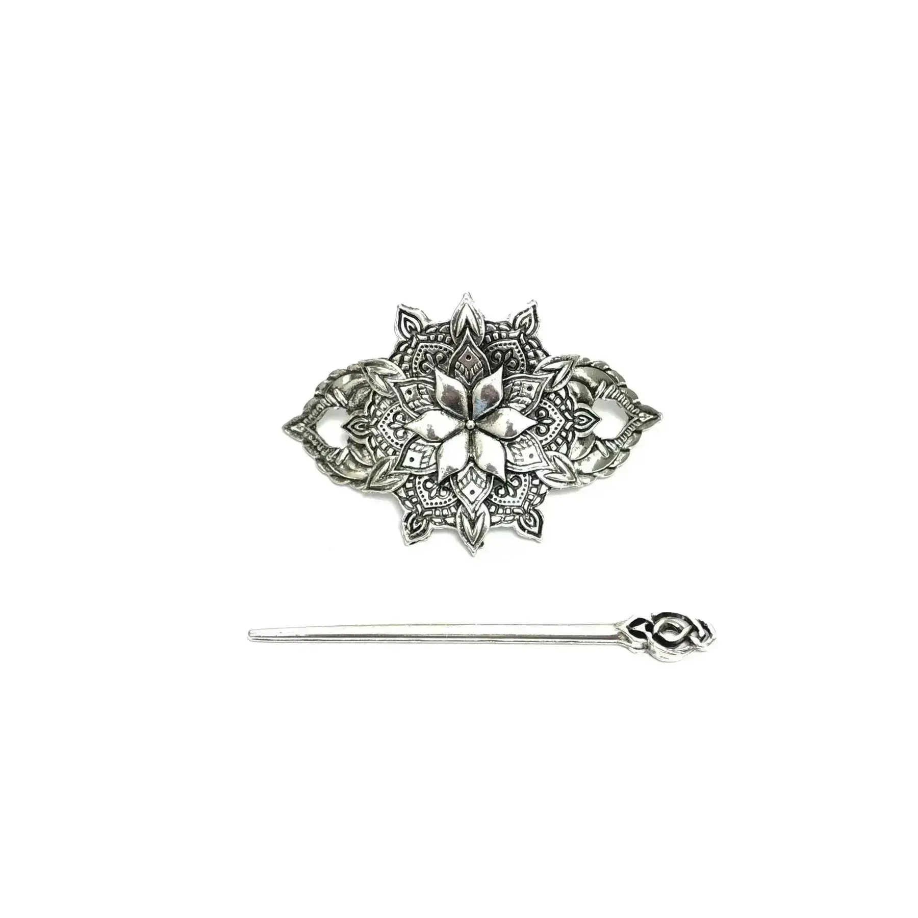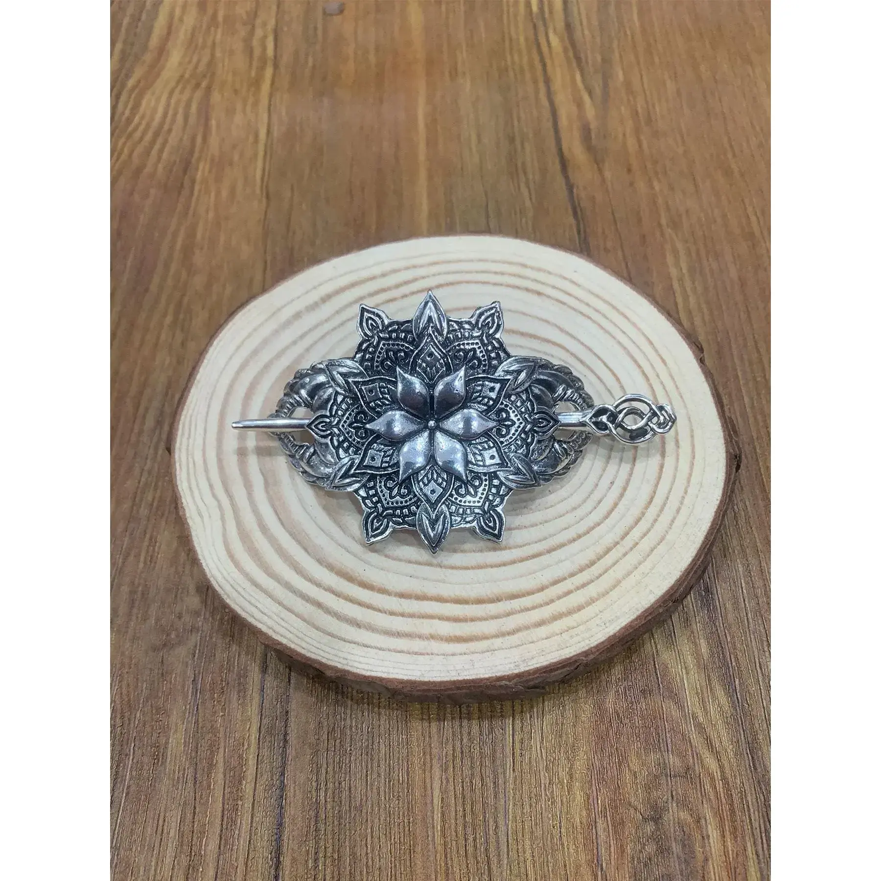 Silver flower shaped hair stick