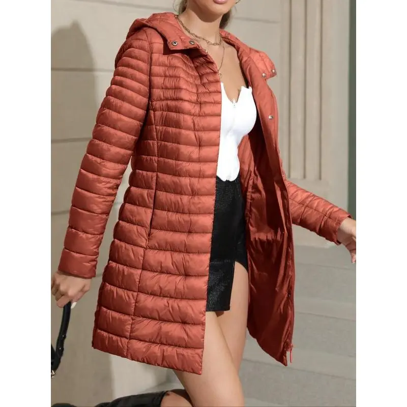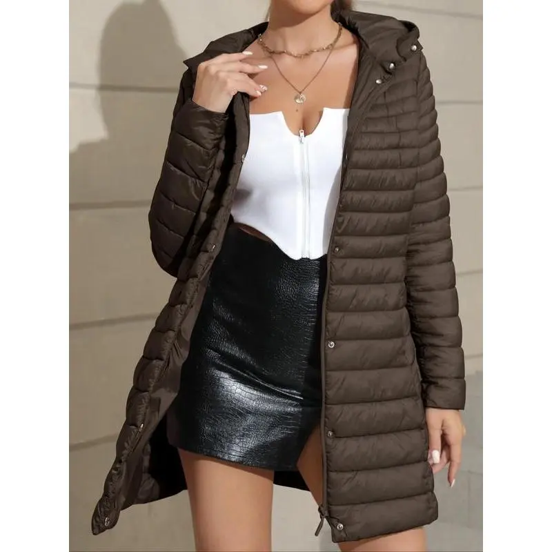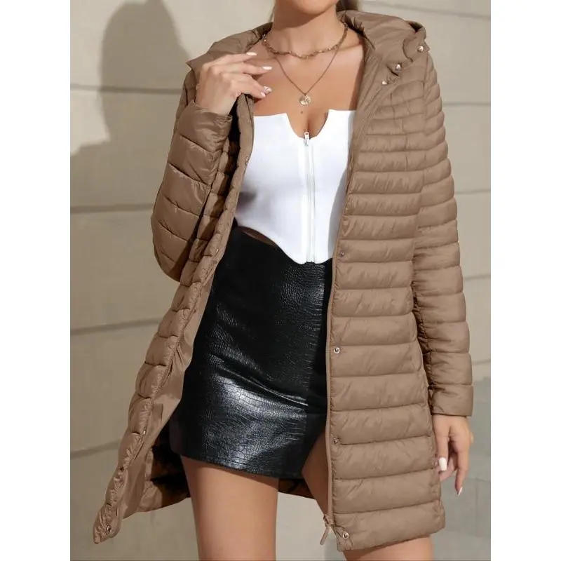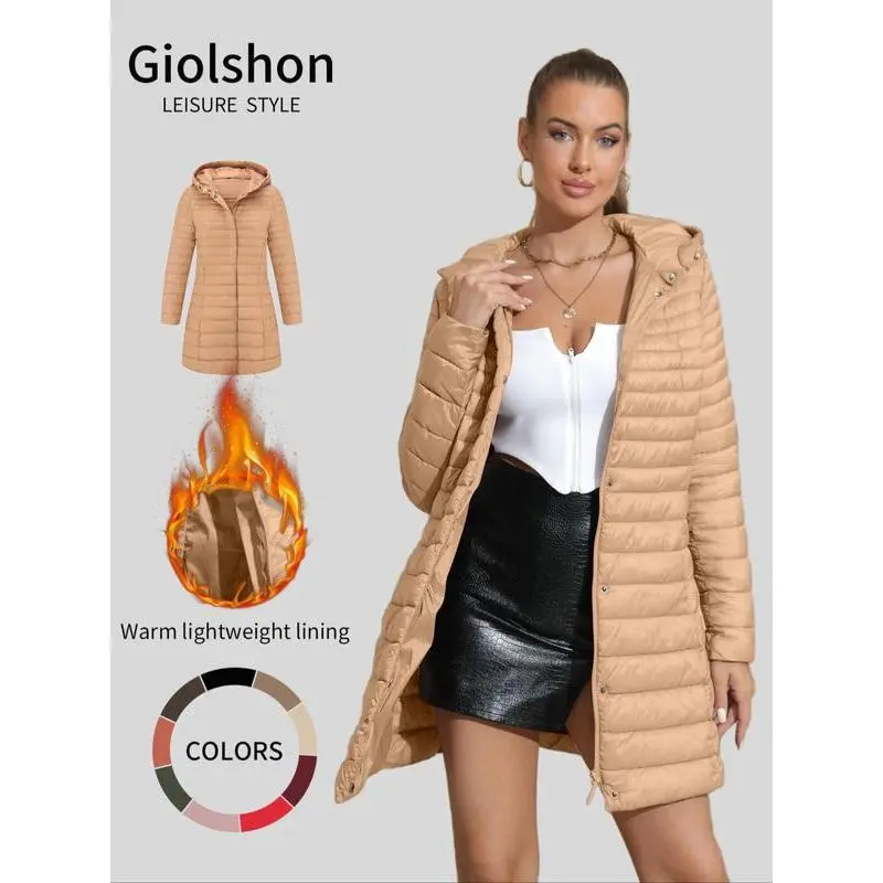 Women'sCasualHoodedPufferJacket,Fall&WinterWovenFabricCoatwithPockets,LightweightWarmDailyWearOuterwear,Womenswear